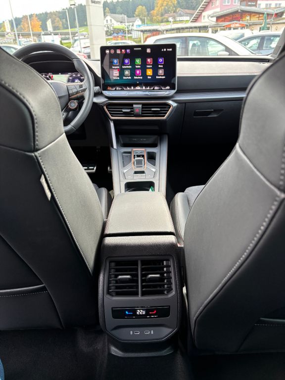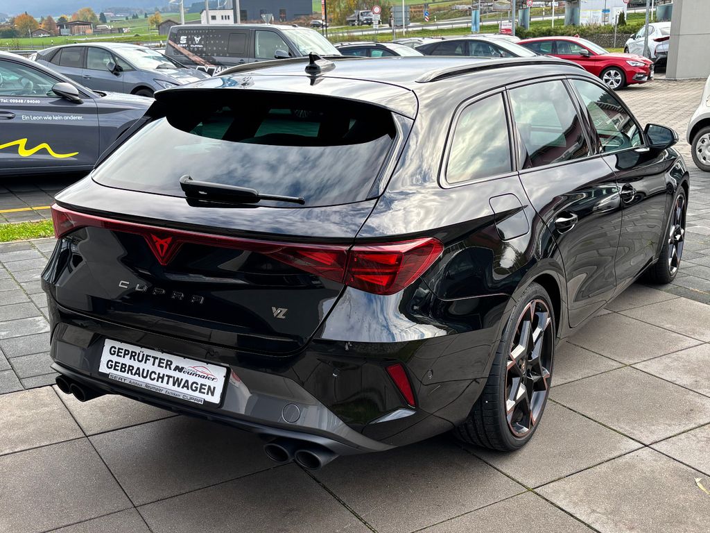6 Lautsprecher, Abdeckkappen Außenspiegel Dark Aluminium, Airbag Beifahrerseite abschaltbar, Airbag Fahrer-/Beifahrerseite, Außenspiegel elektr. verstell-, heiz- und anklappbar mit Spiegelabsenkung und Welcome Light, Connectivity-Box, Dachhimmel schwarz, Dachreling schwarz, hochglänzend, Design-Paket Dynamic, Differentialsperre (Vorderachse), Driving-Performance-Paket Polar schwarz / silber, Edge Paket mit Safesicherung, Einparkhilfe vorn und hinten, Einstiegsleisten vorn beleuchtet, Elektron. Differentialsperre (XDS), Fahrassistenz-System: Fahrprofilauswahl (CUPRA Drive Profile), Fensterheber elektrisch vorn + hinten mit Komfortschaltung, Fensterzierleisten schwarz hochglänzend, Full Link (MirrorLink, Apple CarPlay und Android Auto), Gepäckraum-Abtrennung (Netz), Gepäckraumabdeckung / Rollo, Gepäckraumbeleuchtung (LED), Handschuhfach mit LED-Beleuchtung, Innenausstattung: Interieurleisten Copper, Isofix-Aufnahmen für Kindersitz an Beifahrersitz und Rücksitz (inkl. i-Size-Kindersitze), Karosserie: 5-türig, Klimaanlage Climatronic 3-Zonen, Kombiinstrument digital (virtual cockpit), Kopf-Airbag-System, Kopfstützen hinten (3-fach), Lendenwirbelstütze Sitz vorn links, verstellbar, Lendenwirbelstütze Sitz vorn rechts, verstellbar, Leseleuchten hinten LED, Leseleuchten vorn LED, Licht- und Sicht-Paket, Media-System Plus, Mobile Online Dienste Cupra Connect, Modellpflege, Motor 2,0 Ltr. - 245 kW 16V TSI, Notrufsystem, Parkbremse elektrisch mit Auto-Hold-Funktion, Radioempfang digital (DAB+), Reifen-Reparaturset, Rücksitzlehne geteilt/klappbar mit Mittelarmlehne und Durchladeeinrichtung, Rücksitzlehnen umklappbar mit Fernentriegelung im Kofferraum, Schadstoffarm nach Abgasnorm Euro 6e, Seitenairbag, Seitenairbag vorn mitte (Central Airbag), Seitenscheiben ab 2.Sitzreihe und Heckscheibe dunkel getönt (Privacy Glass), Sicherheitsgurte vorn höhenverstellbar, Sitz vorn links höhenverstellbar, Sitz vorn rechts höhenverstellbar, Sonnenblende links mit Spiegel (beleuchtet), Sonnenblende rechts mit Spiegel (beleuchtet), Steckdose 230V im Gepäckraum, USB-Ladeanschlüsse (2-fach, Typ C) für 2.Sitzreihe, USB-Schnittstelle vorn (2-fach, Typ C), Verzurrösen Koffer-/Laderaum, Warnanlage für Sicherheitsgurt-System, Wärmeschutzverglasung