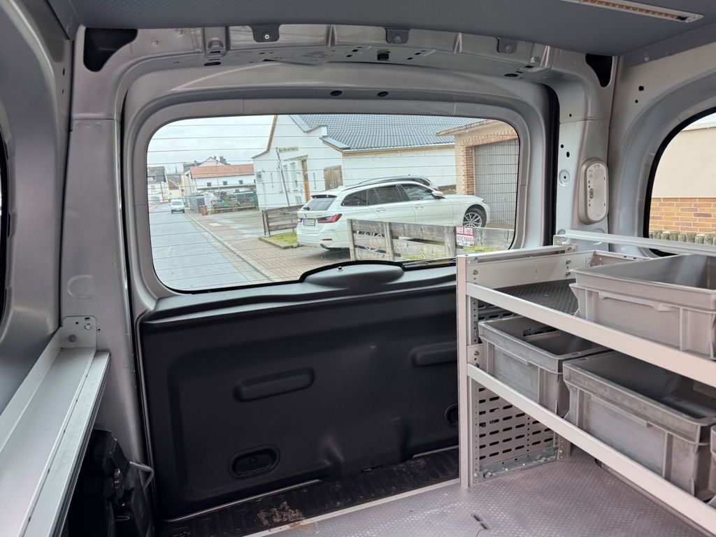 Die silberne Metallic-Lackierung verleiht dem Kangoo ein professionelles Erscheinungsbild. Im Innenraum erwarten Sie praktische Features wie manuelle Klimaanlage, Bluetooth-Konnektivität, Navigationssystem mit Touchscreen und eine Freisprecheinrichtung. Die rechte Schiebetür erleichtert das Be- und Entladen auch auf engen Parkplätzen.