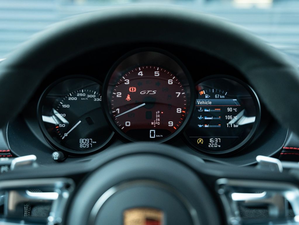 Airbag Fahrer-/Beifahrerseite, Antriebsart: Heckantrieb, Anzeigeinstrumente mit Hintergrund schwarz, Außenspiegel asphärisch, links, Außenspiegel elektr. verstell- und heizbar, beide, Blinkleuchten LED, Bremssättel Rot lackiert, Dachhimmel Race-Tex, Diebstahlsicherung für Räder (Felgenschlösser), Drehzahlmesser, Einschaltautomatik für Fahrlicht, Fensterzierleisten schwarz, Getränkehalter, Heckflügelspoiler, Heckleuchten LED, abgedunkelt, Heckscheibe heizbar, Heckunterteil Sport Design lackiert (schwarz), Karosserie: 2-türig, Kopf-Airbag-System Porsche Side Impact Protection System (POSIP), Kraftstofftank: 64 Ltr., Lenksäule (Lenkrad) verstellbar, LM-Felgen (schwarz, seidenglänzend lackiert), LM-Felgen, Motor 4,0 Ltr. - 294 kW KAT, Otto-Partikelfilter (OPF), Parkbremse elektrisch, Pedalerie und Fußstütze in Sport-Optik, Porsche Car Connect, Porsche Communications Management (PCM), Porsche Torque Vectoring (PTV), Radioempfang digital (DAB+), Reifen-Reparaturkit, Reifendruck-Kontrollsystem, Schadstoffarm nach Abgasnorm Euro 6d, Schalt-/Wählhebelgriff Alcantara / Race-Tex, Schriftzug Porsche + Modellbezeichnung lackiert, Sitzbezug / Polsterung: Leder / Alcantara, Sport-Auspuffanlage, Endrohre schwarz, Sport-Chrono-Paket, Sport-Fahrwerk (PASM) elektronisch gesteuert, Start/Stop-Anlage, Verglasung getönt