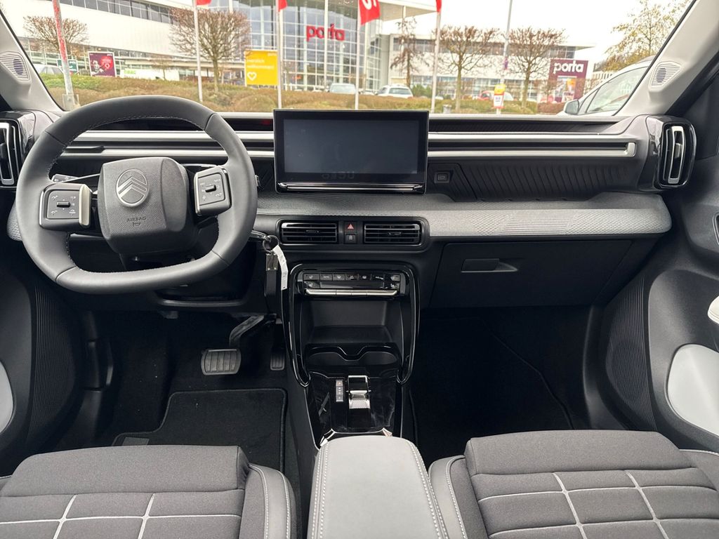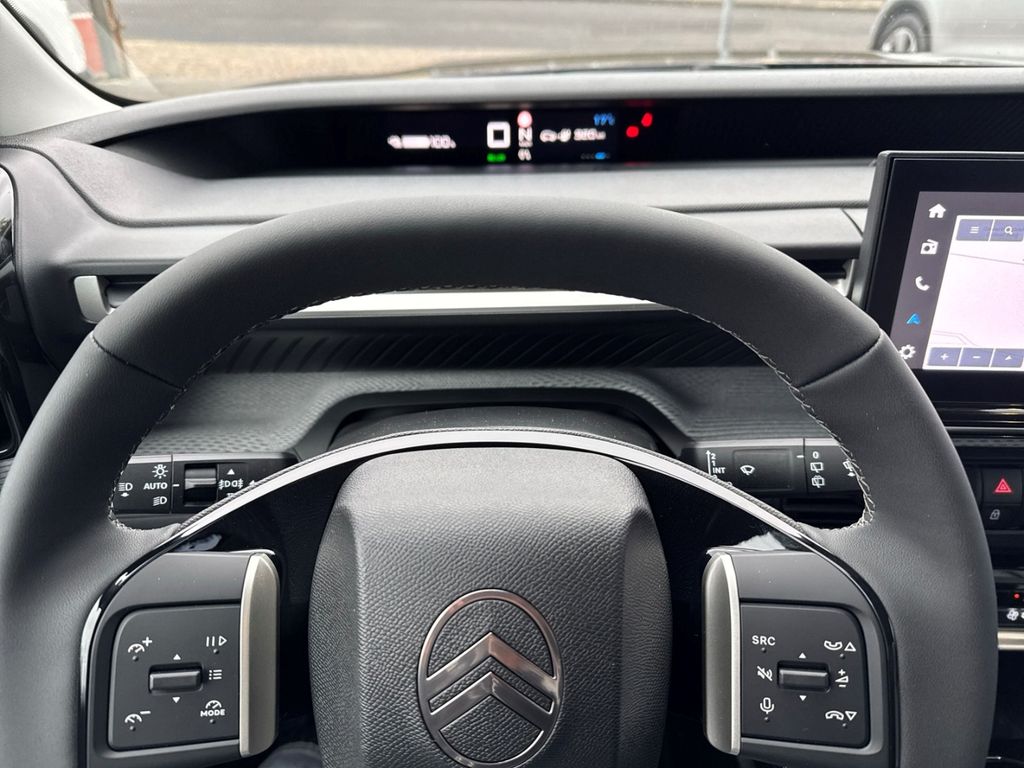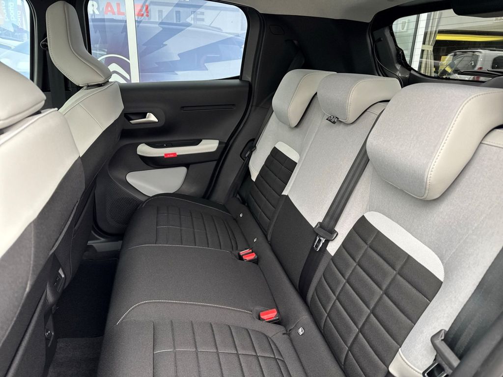 - Weiteres: Antriebs-Schlupfregelung (ASR), Reifendruck-Kontrollsystem, Isofix-Aufnahmen für Kindersitz an Rücksitz, Scheibenwischer mit Regensensor, Dachreling, Seitenscheiben hinten und Heckscheibe dunkel getönt, Einschaltautomatik für Fahrlicht, Fahrmodusschalter, Comfort Federung (Citroen Advanced), Rücksitzbank klappbar 1/3-2/3, USB-/Audio-Schnittstelle (Typ C), Geschwindigkeits-Regelanlage (Tempomat) inkl. Geschwindigkeits-Begrenzeranlage, USB-/Audio-Schnittstelle (Typ C, 2-fach), Fensterheber elektrisch hinten, Außenausstattung: Farbclips in Rot, Dachfarbe weiß, OPALE, Lenkrad (Spaltleder), Sonderlackierung Montecarlo-Blau, LM-Felgen, Elektromotor 83 kW (cont. 53 kW), Head-up-Display (Kombiinstrument hochgesetzt), Reifen-Reparaturkit, Airbag Fahrer-/Beifahrerseite, Tagfahrlicht LED, Fensterheber elektrisch vorn, Seitenairbag vorn, Kopf-Airbag-System, Anti-Blockier-System (ABS), Heckleuchten LED, 3D-Optik, 12V-Steckdose, Akustischer Fußgängerschutz, Aufmerksamkeits-Assistent (Müdigkeitserkennungs-Sensor), Außenspiegel elektr. anklappbar, Beifahrerairbag abschaltbar, Berganfahrhilfe, Bremsassistent, Bremsenergierückgewinnung, Elektr. Bremskraftverteilung, Freisprechanlage Bluetooth, Induktionsladeschale für Smartphone, Innenausstattung: Ambiente Metropolitan Grey, Innenspiegel mit Abblendautomatik, Klimaautomatik, Parkbremse elektrisch, Polster: Stoff/Kunstleder, Radioempfang Digital (DAB), Scheinwerfer Eco-LED, Smartphone Schnittstelle, Spurassistent (AFIL), Verkehrszeichenerkennung, Warnanlage für Sicherheitsgurte, Winter-Paket