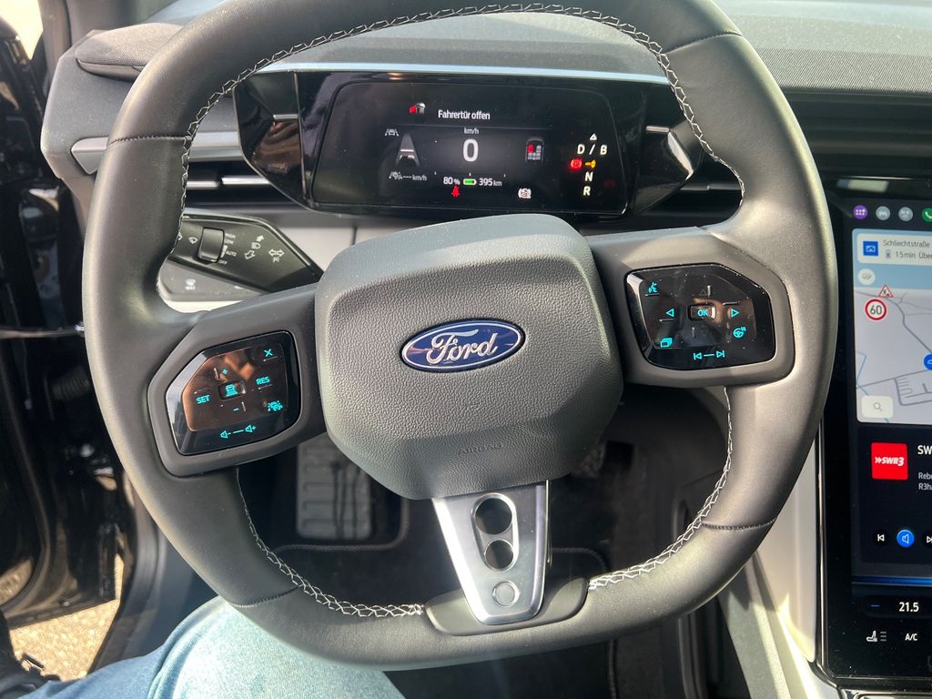 7 Lautsprecher, Airbag Beifahrerseite abschaltbar, Airbag Fahrer-/Beifahrerseite, Akustischer Fußgängerschutz (Außensound, AVAS), Außenspiegel elektr. anklappbar, Außenspiegel elektr. verstell- und heizbar, Außenspiegel mit Totwinkel-Assistent, Außenspiegel schwarz lackiert, Blinkleuchte in Außenspiegel integriert, Bodenleuchte im Außenspiegel, Dachhimmel Stoff, dunkel, Elektromotor 210 kW (cont. 89 kW), Fahrassistenz-System: Ausweich-Assistent (Evasive Steer Assistance, ESA), Fahrassistenz-System: Falschfahrer-Warnfunktion, Fahrassistenz-System: Post-Collision-System, Fahrassistenz-System: Pre-Collision-System mit Querverkehrs-Assistent (Kamera- und Radar-basiert), Fahrassistenz-System: Rückfahr-Assistent (Notbremsassistent), Fahrassistenz-System: Spurfolgeassistent (Lane Following Assist, LFA), Fahrassistenz-System: Stauassistent inkl. Stop&Go-Funktion, Fahrassistenz-System: Verkehrsschildassistent, Ford SYNC Move mit beweglichem Touchscreen und My Privat Locker, FordPass Connect inkl. eCall, Fußmatten Velours, Gepäckraumabdeckung / Rollo, Gurtstraffer, Heckleuchten LED, Heckspoiler, HV-Batterie 77 kWh, Induktionsladeschale für mobile Endgeräte, Innenausstattung: Dekor Liquid-Cosmos, Innenspiegel mit Abblendautomatik, Intelligenter Geschwindigkeits-Begrenzer, Isofix-Aufnahmen für Kindersitz, Karosserie: 5-türig, Klimaautomatik 2-Zonen, Kombiinstrument Digitalanzeige 5,3 Zoll, Kopf-Schulter-Airbag hinten, Kopf-Schulter-Airbag vorn, Kopfstützen hinten mechan. verstellbar (3 Stück), Kopfstützen vorn 4-fach verstellbar, Ladekabel mit Typ 2-Stecker (Mode 3), Laderaumabtrennung (unten), Lenkrad (Kunstleder), Lenkrad heizbar, Leseleuchte vorn, Leseleuchten im Fond, LM-Felgen, Mittelkonsole Premium, Parkbremse elektrisch mit Auto-Hold-Funktion, Parkpilotsystem vorn und hinten, Radioempfang digital (DAB), Radstand Standard, Reifen-Reparaturkit, Reifendruck-Kontrollsystem, Rückfahrkamera, Rücksitzlehne geteilt/klappbar (60:40), Scheinwerfer LED, Seitenairbag vorn, Seitenairbag vorn mitte (Interaktionsairbag), Sitz vorn links elektr. verstellbar (12-fach), Sitzbezug / Polsterung: Kunstleder (Sensico), Sitze vorn mit Massagefunktion, Sitzheizung vorn, Smartphone-Integration (Apple CarPlay und Android Auto), Sonnenblende links mit Spiegel (beleuchtet), Sonnenblende rechts mit Spiegel (beleuchtet), Sportsitze, Sprachsteuerung und Bluetooth-Schnittstelle, Staubox, Aufbewahrungsbehälter im Kofferraum, Steckdose (12V-Anschluß) im Koffer-/Laderaum, Stoßfänger Wagenfarbe, Türgriffe außen beleuchtet, USB-Anschlüsse (2) vorn, Verglasung hinten abgedunkelt (Privacy Glass), Warnanlage für Sicherheitsgurte hinten, Warnanlage für Sicherheitsgurte vorn, WLAN-Hotspot, Zweiter Schlüssel mit Fernbedienung
