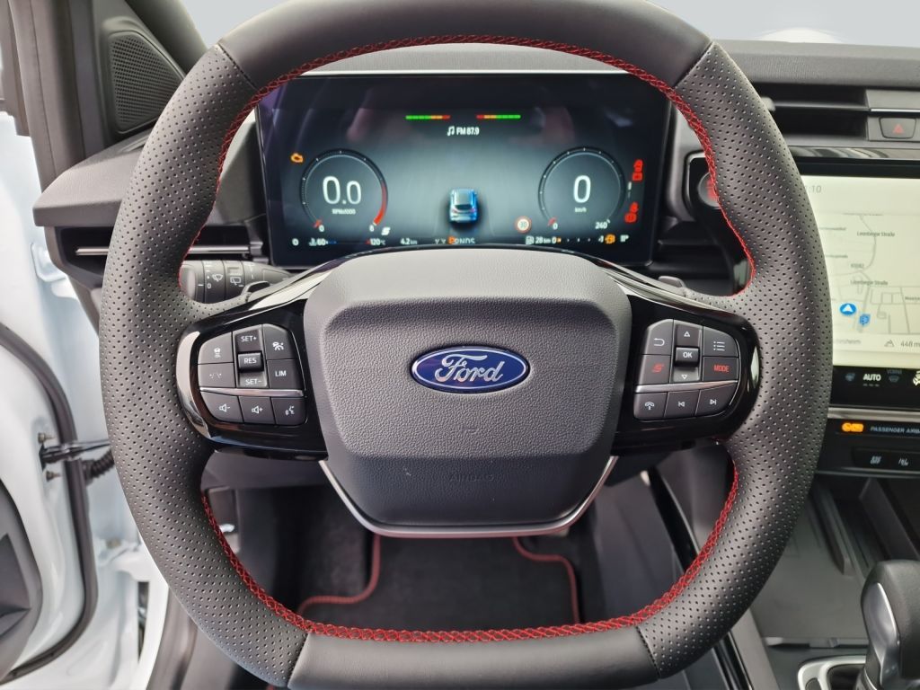 Airbags: Kopf-und Schulterairbags vorne, Ambientebeleuchtung, Armaturenbrett teilweise mit Kunstlederb, Außensp. el. einstellbar,beheizbar (ST), Bereifung: 8Jx19 LMräder 5-Sp.-Y-Design, Bereifung: Radmuttern, abschließbar, Body-Styling-Kit ST, Bremssättel, rot lackiert, Dachspoiler, groß, Diebstahl-Alarmanlage mit Innenraumüberw, Doppelrohr-Auspuffanlage, Einstiegszierleisten vorn, Ford Performa, Fahrer-,Beifahrersitz,14-fach einstellb., Fahrmodus-Schalter selektiver, Fahrwerk: ST-Sportfahrwerk, Falschfahrer-Warnfunktion, Fensterheber vorn und hinten elektrisch, Ford MegaBox, Frontscheibe akustisch laminiert, Getriebe: 7-Gang-Automatik PowerShift, Heckscheiben-Wisch-/Waschanlage, ISOFIX-Halterungen an der Rücksitzbank, Innenspiegel automatisch abblendend, Klimaanlage mit automatischer Temperat., LED-Matrix-Scheinwerfer, adaptiv, Lackierung: Uni-Sonderfarbe, Lenkrad: Schaltwippen am Lenkrad, Mittelkonsole vorn, Müdigkeitswarner, Navigationssystem: Ford Navigationssys., Ottopartikelfilter, Paket: Fahrerassistenz [Spurwechselassistent, Totwinkel-Assistent], Paket: Komfort, Paket: Winter, Panorama-Schiebedach, elektrisch, Pedalerie mit Aluminium-Auflagen, Polster:Sensico Leder-Opt./Stoff Anthraz, Radio: Ford SYNC 4 mit AppLink, 12""-Touc, Radiozubehör: 5G Modem, Reifendruckkontrollsystem, Scheibenbremsen vorn, innenbelüftet, Scheibenwischer mit Regensensor, Seitenscheiben u. Heckscheibe dun.getönt, Steckdose: 12-Volt, USB Anschlüsse, Variabler Kühlerlufteinlass,Vorbehaltlich Irrtümer, Änderungen und Zwischenverkauf