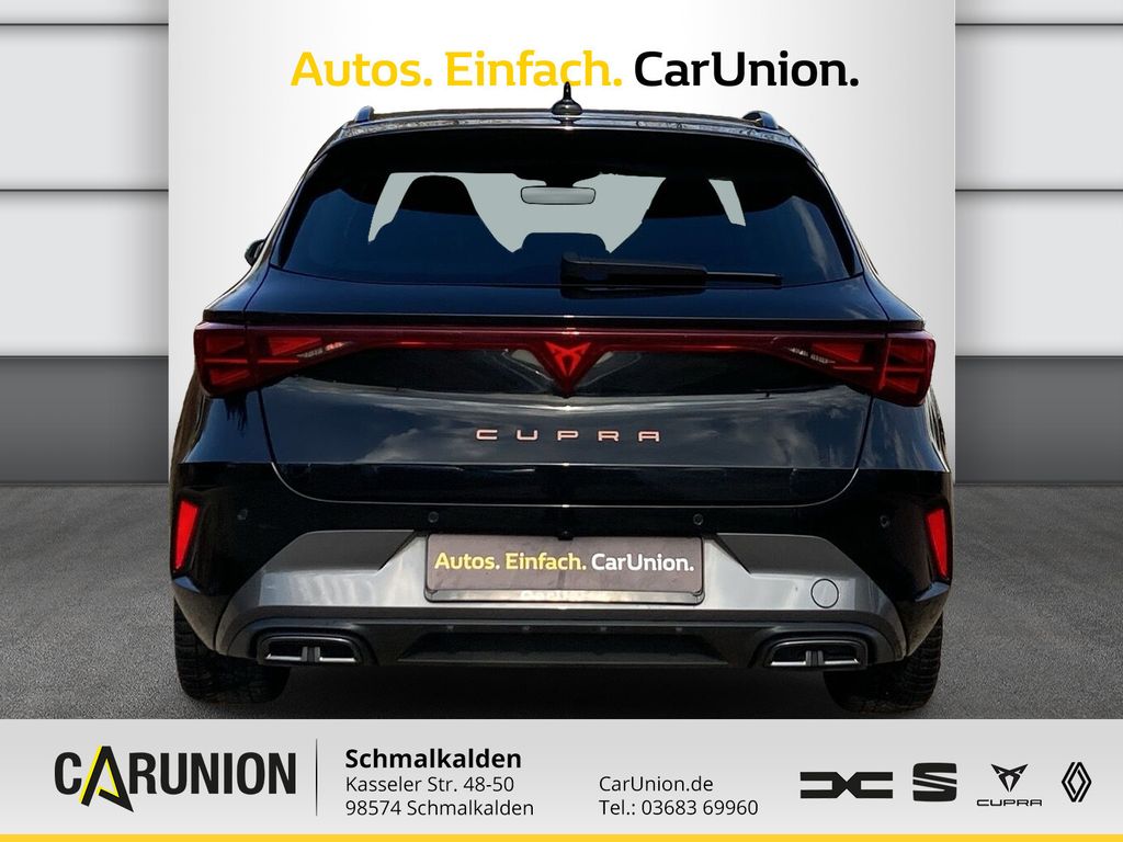 Audiosystem: Immersive by Sennheiser Sound-System (390 Watt), Design-Paket Dynamic, Außenspiegel elektr. verstell-. heiz- und anklappbar. Spiegelabsenkung. Welcome Light. Memory, Lendenwirbelstütze Sitz vorn links. elektr. verstellbar, Sitz vorn links elektr. verstellbar (mit Memory), Sitzbezug / Polsterung: Stoff Dinamica / Kunstleder schwarz mit blauen Akzenten, Sitzheizung vorn, Sport-Schalensitze vorn mit integrierten Kopfstützen, Winter-Paket, Driving-Performance-Paket Polar schwarz / silber, Fahrassistenz-System: Adaptive Fahrwerksregelung (DCC), LM-Felgen, Edge-Paket, Ambiente-Beleuchtung LED, Ambiente-Beleuchtung Smart Ambient Light, Diebstahl-Warnanlage mit Innenraumüberwachung und Abschleppschutz, Heckklappe/-Deckel elektr. betätigt (öffnen + schliessen. sensorgesteuert), Rückfahrkamera, Schließ-/Startsystem Kessy Advanced, Intelligent-Drive-Paket, Audio-Navigationssystem mit Touchscreen Farbbildschirm 12.9", Fahrassistenz-Paket XL, Fahrassistenz-System: Pre-Crash-System, Fahrassistenz-System: Spurhalteassistent Plus inkl. Travel Assist. Emergency Assist und Stauassistent, Fahrassistenz-System: Totwinkel-Assistent mit Auspark-Assistent. Spurwechselassistent und Ausstiegswarnung, Mobile Online Dienste Cupra Connect plus, Matrix-LED-Scheinwerfer mit LED-Signatur, Metallic-Lackierung, Reserverad als Notrad, Seitenschweller in Dark Aluminium, Skyline-Paket, Panorama Schiebe-/Hebedach elektrisch, 6 Lautsprecher, Abdeckkappen Außenspiegel Dark Aluminium, Airbag Beifahrerseite abschaltbar, Airbag Fahrer-/Beifahrerseite, Antriebsart: Frontantrieb, Außenspiegel elektr. verstell-. heiz- und anklappbar mit Spiegelabsenkung und Welcome Light, Connectivity-Box, Dachhimmel schwarz, Dachreling schwarz. hochglänzend, Differentialsperre (Vorderachse), Einparkhilfe vorn und hinten, Einstiegsleisten vorn beleuchtet, Elektron. Differentialsperre (XDS), Fahrassistenz-System: Autom. Distanzregelung (ACC / PCC) mit vorausschauender Geschw.-Regelung, Fahrassistenz-System: Fahrprofilauswahl (CUPRA Drive Profile), Fahrassistenz-System: Fernlichtassistent, Fahrassistenz-System: Müdigkeitserkennung, Fahrassistenz-System: Spurhalteassistent, Fahrassistenz-System: Umfeldbeobachtungssystem (Front assist) mit City-Notbremsfunktion, Fahrassistenz-System: Verkehrszeichenerkennung, Fensterheber elektrisch vorn + hinten mit Komfortschaltung, Fensterzierleisten schwarz hochglänzend, Full Link (MirrorLink. Apple CarPlay und Android Auto), Gepäck-/Laderaumboden doppelt, Gepäckraum-Abtrennung (Netz), Gepäckraumabdeckung / Rollo, Gepäckraumbeleuchtung (LED), Getriebe 7-Gang - Doppe