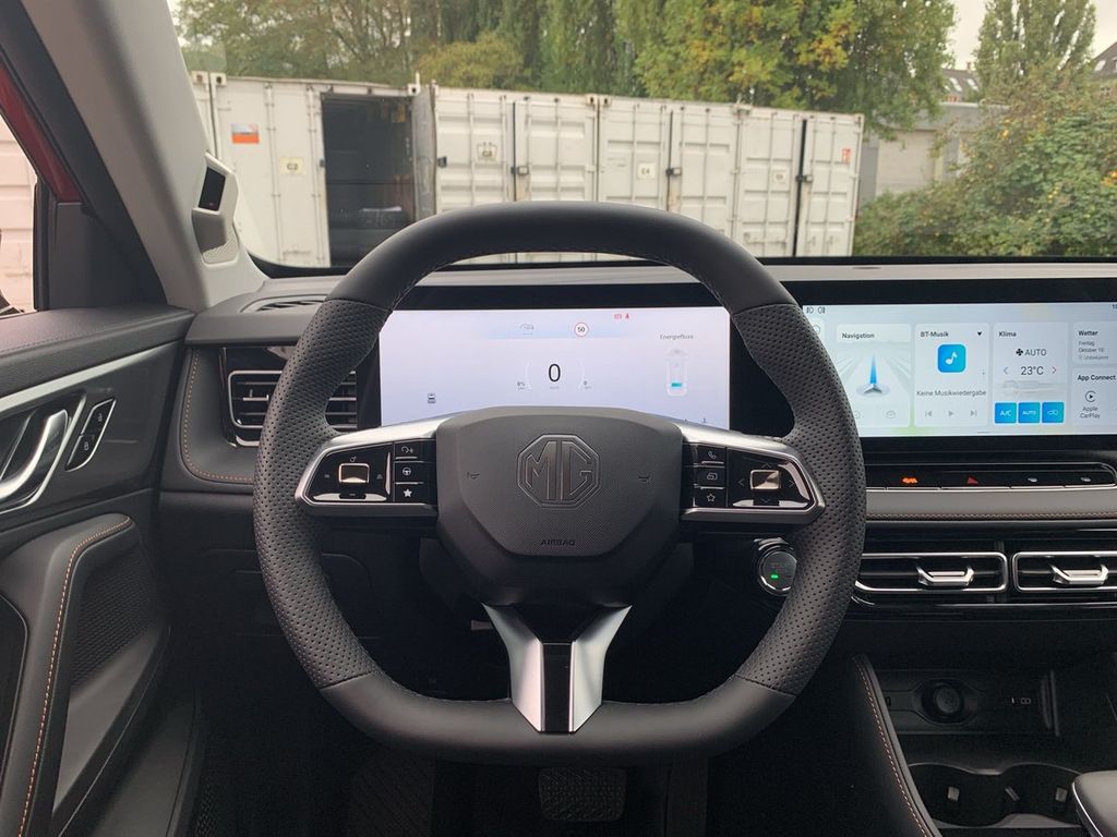 - MG iSMART Connectivity System (enthält: Fernsteuerung, Sprachsteuerung, Wettervorhersage, Verkehrsnavigation mit Echtzeit-Verkehrsdaten, Synchronisierung von Fahrten und Terminen, Amazon-Music-Streaming, Apple Carplay/Android Auto, Cockpit mit zwei 123-Zoll-Displays)