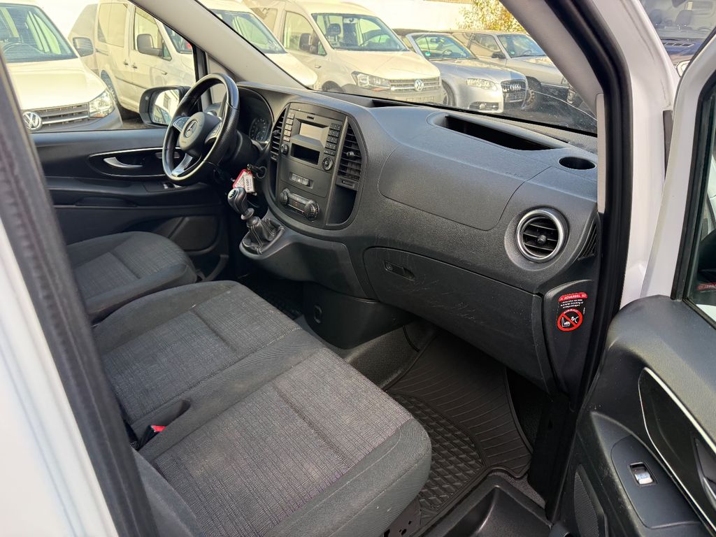 3-Tasten-Fernbedienung für Zentralverriegelung, 3. Bremsleuchte, Adaptives Bremslicht, Airbag Beifahrerseite, Airbag Fahrerseite, Anfahrhilfe (Berganfahr-Assistent), Außenspiegel asphärisch, beide, Außentemperaturanzeige, Befestigungsschienen für Dachträger, BlueEfficiency-Paket, Bodenbelag: Fahrgastraum TPO, Bremsassistent, Bremssystem mit ABS+ASR, Deckenleuchte im Laderaum, Fahrassistenz-System: Attention-Assist (Müdigkeitserkennungs-Sensor), Fahrassistenz-System: Pannenmanagement, Fahrassistenz-System: Seitenwind-Assistent, Frontscheibe mit Scheibenantenne, Generator 185 A, Getriebe 6-Gang - FSG, Getränkehalter hinten, Getränkehalter vorn, Gurtstraffer, Haltegriff Beifahrerseite, Handschuhfach abschließbar, Karosserie/Aufbau: extra lang, Karosserie/Aufbau: Kasten Standard, Kommunikationsmodul (LTE) für digitale Dienste, Kraftstofftank: Haupttank 57 Ltr., Laderaumtrennwand durchgehend, Lastenverankerung / Verzurrösen, Mercedes-Benz Notrufsystem, Motor 1,7 Ltr. - 100 kW CDI KAT, Nebelschlussleuchte, Radstand 3430 mm, Schadstoffarm nach Abgasnorm Euro 6d-TEMP, Schiebetür Lade-/Fahrgastraum rechts, Sicherheitsgurt-System mit Warnanlage (Fahrer-/Beifahrerseite), Sitzbezug / Polsterung: Stoff, Stahlfelgen 6,5x16, Verkleidung Fenstersäulen, Verkleidung im Lade-/FG-Raum: Hartfaser halbhoch, Verzurrschienen im Laderaum - Seitenwand an Dachrahmen, Wartungsintervall-Anzeige Assyst, Zul. Gesamtgewicht 2,80 t