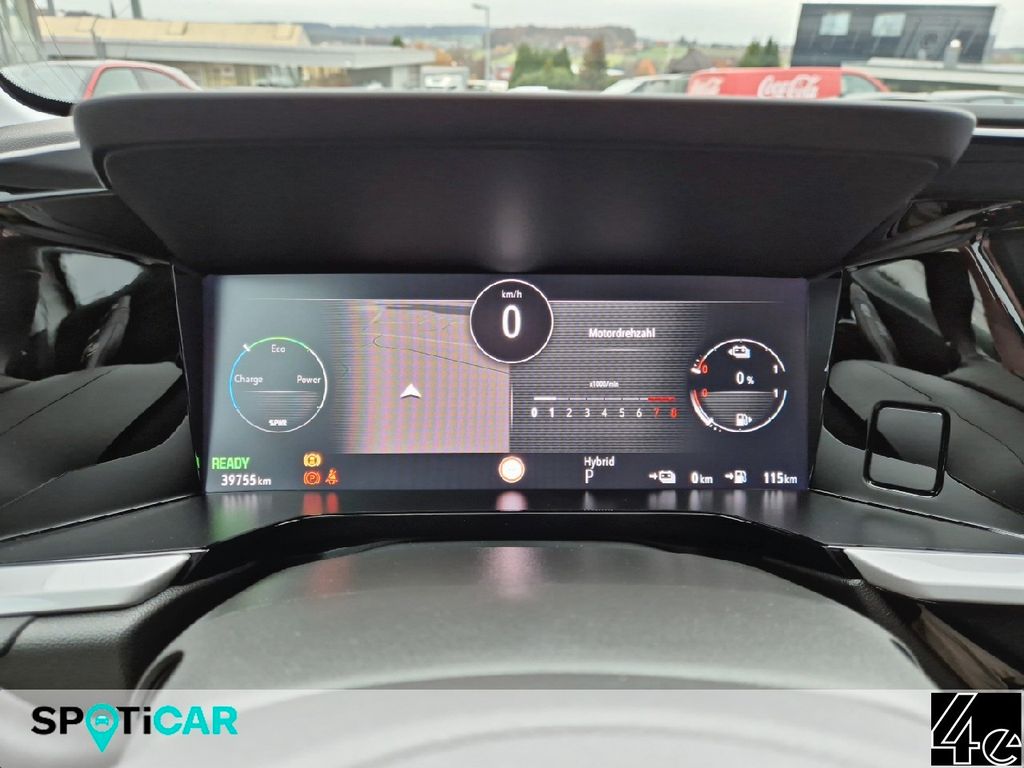 Airbag Fahrer-/Beifahrerseite, Akustischer Fußgängerschutz (Außensound), Ambiente-Beleuchtung Mittelkonsole, Ambiente-Beleuchtung Türverkleidung, Audio-Navigationssystem Multimedia Navi Pro (10" Display), Audiobedienung am Lenkrad, Außenspiegel elektr. verstell- und heizbar, elektr. anklappbar, Bluetooth Audio-Streaming, Bordcomputer, Bremsassistent, Charging-Paket, DAB-Tuner (Radioempfang digital), Dach schwarz lackiert, Dach, Design-Ausführung (Chrom), Dachreling schwarz, hochglänzend, Einschaltautomatik für Fahrlicht, Elektromotor VA 81 kW (Hybridantrieb), Elektron. Stabilitäts-Programm Plus (ESP), Elektron. Traktionskontrolle, Fahrassistenz-System: Abstandswarner, Fahrassistenz-System: Autonomer Notbrems-Assistent mit Frontkollisionswarnung und Fußgängererkennung, Fahrassistenz-System: Berganfahr-Assistent (HSA, Hill Start Assist), Fahrassistenz-System: Fernlichtassistent, Fahrassistenz-System: Verkehrszeichenerkennung, Fahrmodusschalter, Fensterheber elektrisch vorn + hinten, Feststellbremse elektrisch, Frontscheibe geräuschdämmend, Gepäckraum-Abtrennung (Netz), Getriebe Automatik - mit Start-/Stop (8-Stufen), Heckleuchten LED, Hybrid 165 kW (Motor 1,6 Ltr. - 133 kW), Innenausstattung: Leder Alcantara, Innenraum-Paket, Innenspiegel mit Abblendautomatik, Isofix-Aufnahmen für Kindersitz an Beifahrersitz, Isofix-Aufnahmen für Kindersitz an Rücksitz, Karosserie: 5-türig, Klimaautomatik 2-Zonen, Kopf-Airbag-System, Ladekabel mit Schukostecker (Mode 2), Ladevorrichtung On-Board-Lader, Lenkrad (Sport/Leder - 3-Speichen, unten abgeflacht) mit Multifunktion, Lenkrad mit Schaltwippen/-tasten, Leseleuchten im Fond, Leseleuchten vorn (2), LM-Felgen, Modellpflege, MP3-Schnittstelle für Mobiltelefon/Handy, Opel Connect, Radstand 2675 mm, Reifendruck-Kontrollsystem, Schadstoffarm nach Abgasnorm Euro 6d, Seitenairbag vorn, Sitzbelüftung vorn, Sonnenblenden mit Spiegel (beleuchtet), Start/Stop-Anlage, Steckdose (12V-Anschluß) im Koffer-/Laderaum, Steuer-AV Plug-in Hybridantrieb, Technologie-Paket Park & Go Premium, Textilfussmatten, Türgriffe außen Wagenfarbe mit Chromeinlage, Unterfahrschutz-Optik, vorn und hinten (Silber), USB-Schnittstelle, Voll-LED (IntelliLux), Wärmeschutzverglasung hinten abgedunkelt (Solar-Protect)