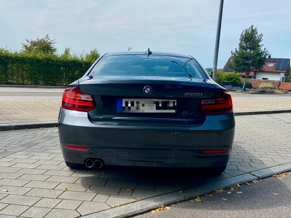 Verkaufe mein 220i Coupé. Fahrzeug ist knapp 9 Jahre alt und wurde immer scheckheftgepflegt. 2 Fahrzeughalter. 127.000 km. Kleine bis mittlere Lackschäden vorhanden, keine großen Schäden, Fahrzeug unfallfrei. Interieur sehr gepflegt, Harman Kardon Soundanlage, Navi, Sitzheizung.Aktuelle Bereifung Allwetterreifen, 16 Zoll Leichtmetallfelgen schwarz, zusätzlich ein Satz 16 Zoll Original BMW Doppelspeiche silber verfügbar, ohne Bereifung. Zusätzlich Original BMW Kühlernieren in silber (Serie)
