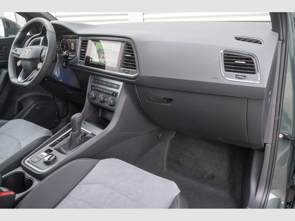 Audio-Navigationssystem mit Touchscreen Farbbildschirm, Radioempfang digital (DAB+), Sprachsteuerungs-System, USB-Schnittstelle vorn (2-fach, Typ C), Mobile Online Dienste Cupra Connect, Bluetooth-Schnittstelle mit Freisprecheinrichtung integriert, Bluetooth Audio-Streaming, Licht- und Sicht-Paket, Lichtassistent (Coming Home, Leaving Home), Licht- und Regensensor, Innenspiegel mit Abblendautomatik, Scheinwerfer Voll-LED, Leuchtweitenregelung automatisch, 3. Bremsleuchte, Ablagetasche an Vordersitzlehnen, Airbag Beifahrerseite abschaltbar, Airbag Fahrer-/Beifahrerseite, Ambiente-Beleuchtung LED, Anti-Blockier-System (ABS), Antriebs-Schlupfregelung (ASR), Antriebsart: Frontantrieb, Außenspiegel elektr. verstell-, heiz- und anklappbar mit Spiegelabsenkung und Welcome Light, Bordcomputer, Brillenfach, Dachreling schwarz, Doppeltonhorn, Einstiegsleisten (Aluminium) vorn, beleuchtet, Elektron. Differentialsperre (XDS), Elektron. Stabilitätskontrolle (ESC), Fahrassistenz-System: Berganfahr-Assistent, Fahrassistenz-System: Fahrprofilauswahl (CUPRA Drive Profile), Fahrassistenz-System: Müdigkeitserkennung, Fahrassistenz-System: Parklenkassistent mit Einparkhilfe vorn und hinten inkl. Rückfahrkamera, Fahrassistenz-System: Spurhalteassistent, Fahrassistenz-System: Umfeldbeobachtungssystem (Front assist) mit City-Notbremsfunktion, Fahrassistenz-System: Verkehrszeichenerkennung, Fensterheber elektrisch vorn + hinten mit Komfortschaltung, Full Link (MirrorLink, Apple CarPlay und Android Auto), Fußraumbeleuchtung LED, Gepäckraumabdeckung / Rollo, Gepäckraumbeleuchtung (LED), Getriebe 7-Gang - Doppelkupplungsgetriebe DSG, Handschuhfach mit LED-Beleuchtung, Heckleuchten LED mit dynamischem Blinklicht, Heckspoiler Wagenfarbe (Dachspoiler), Isofix-Aufnahmen für Kindersitz an Rücksitz, Karosserie: 5-türig, Klimaanlage Climatronic 2-Zonen, Knieairbag Fahrerseite, Kombiinstrument digital (10,25 Zoll), Kopf-Airbag-System, Lendenwirbelstütze Sitz vorn links, verstellbar, Lendenwirbelstütze Sitz vorn rechts, verstellbar, Leseleuchten hinten LED, Leseleuchten vorn LED, LM-Felgen, Metallic-Lackierung, Mittelarmlehne hinten, Mittelkonsole vorn mit Mittelarmlehne, Becherhalter, Ablagebox und Luftausströmer hinten, Mobile Online Dienste Cupra Connect plus, Modellpflege, Motor 1,5 Ltr. - 110 kW 16V TSI ACT, Nebelscheinwerfer LED mit Abbiegelicht, Notrufsystem, Otto-Partikelfilter (OPF), Parkbremse elektrisch, Parkbremse elektrisch mit Auto-Hold-Funktion, Pedale Aluminium-Design, Radlaufabdeckung vorn und hinten lackiert, Radstand 2681 mm, Reifenkontroll-Anzeige, Rücksitzlehne geteilt/klappbar (1/3-2/3), Schadstoffarm nach Abgasnorm Euro 6e, Schließ-/Startsystem Kessy, Schriftzug auf der Heckklappe, Seitenairbag, Seitenscheiben hinten und Heckscheibe abgedunkelt, Servolenkung elektro-mechanisch, Sitz vorn links elektr. verstellbar (mit Memory), Sitz vorn links höhenverstellbar, Sitz vorn rechts höhenverstellbar, Sitzbezug / Polsterung: Sitzmittelbahn in Mikrofaser, Sonnenblende links mit Spiegel (beleuchtet), Sonnenblende rechts mit Spiegel (beleuchtet), Zentralverriegelung mit Fernbedienung.