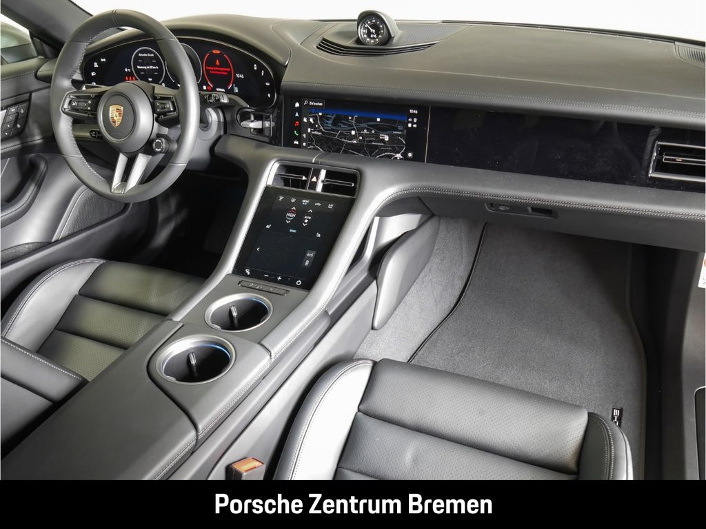 - Weiteres: (0PV) Modellbezeichnung lackiert in Schwarz (matt), (2D5) SportDesign Paket lackiert in Schwarz (hochglanz), (UD1) LED-Türprojektoren „PORSCHE“ Schriftzug, (J9Q) Performancebatterie Plus, (0N5) Hinterachslenkung, (8LH) Sport Chrono Paket, (GM3) Porsche Electric Sport Sound, (null) 20-Zoll Taycan Tequipment Design Winterkomplettradsatz, (1NX) Räder lackiert in Schwarz (seidenglanz), (48D) 21-Zoll RS Spyder Design Räder, (3J7) Porsche Wappen auf Kopfstützen (Vordersitze), (Q2J) Komfortsitze vorn (14-Wege, elektrisch) mit Memory-Paket, (5KA) 4+1 Sitzanlage, (4A4) Sitzheizung vorn und hinten, (VT6) Türeinstiegsblenden Aluminium gebürstet in Schwarz, (9VL) BOSE® Surround Sound-System, (8IU) HD-Matrix LED-Hauptscheinwerfer, (8VL) Leuchtenband mit beleuchtetem „PORSCHE Schriftzug schwarz, (3FG) Panoramadach, (4GP) Windschutzscheibe mit Graukeil, (VW1) Privacy-Verglasung, (KS1) Head-Up Display, (4F2) Komfortzugang, (P67) Abstandsregeltempostat, (7Y8) Spurwechselassistent, Rückfahrkamera, Scheibenwischer mit Regensensor, Isofix-Aufnahmen für Kindersitz an Rücksitz, Außenspiegel elektr. verstell- und heizbar, beide, Porsche Traction Management (PTM), Reifendruck-Kontrollsystem, Rücksitzlehne geteilt/klappbar (60:40), Innenraumfilter: Aktivkohlefilter (Geruchsfilter), Fahrassistenz-System: Integrierte Fahrwerksregelung 4D-Chassis Control, HV-Batterie 105 kWh (Lithium-Ionen), Interieur-Paket lackiert in Dark Silver, Sound-Package Plus, Sound-System BOSE, Radioempfang digital (DAB+), Ambiente-Beleuchtung, Komfortzugang (Schlüssellose Türentriegelung), Head-up-Display, Lenkrad (GT Sport - Leder), LM-Felgen vorn/hinten: 9,5x21 / 11,5x21 (RS Spyder Design Rad), Radnaben - Abdeckungen Porschewappen farbig, Lenkrad heizbar (Zusatz-AV zu Lenkrad), Geschwindigkeits-Regelanlage (Tempomat) mit Abstandsregelung, Airbag Fahrer-/Beifahrerseite, Anti-Blockier-System (ABS), Knieairbag, Wegfahrsperre, Lenksäule (Lenkrad) verstellbar, Kopf-Airbag-System (Curtain-Airbag), Seitenairbag vorn