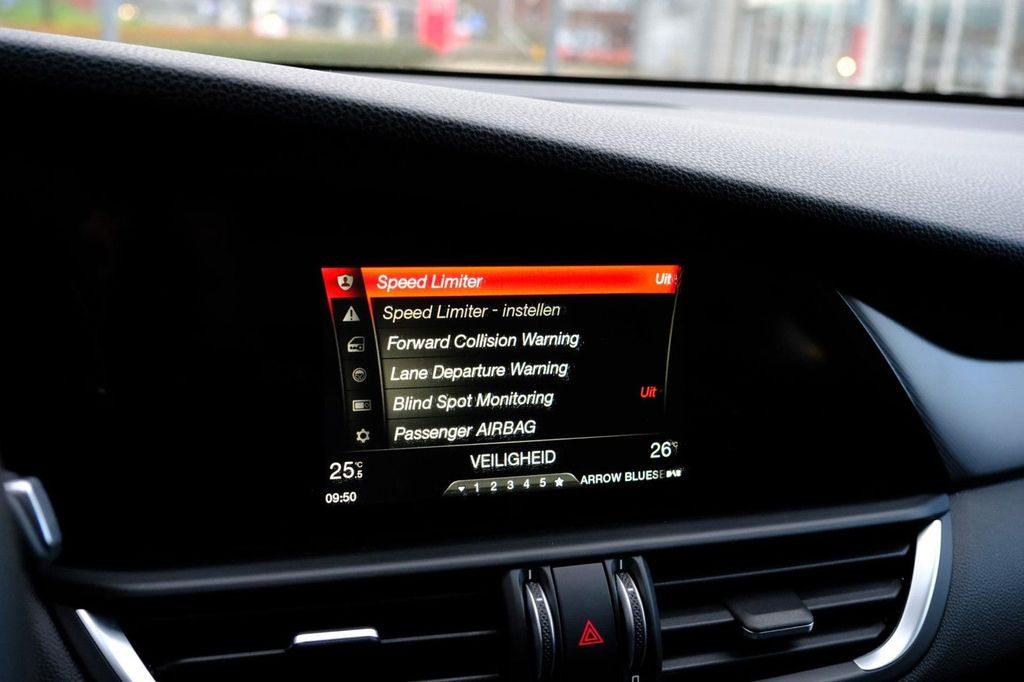 In the Alfa Romeo Giulia, your safety and that of those around you is a priority. Unintentionally drifting out of lane? No worries, the Lane Keeping System warns and corrects the situation. The car is also equipped with blind-spot detection and a tire pressure monitoring system.<
