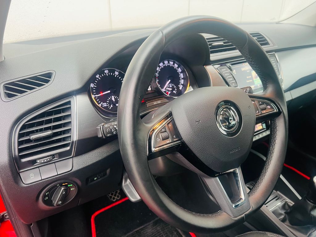 Dieser gepflegte SKODA Fabia aus 2018 präsentiert sich in attraktivem Rot mit schwarzem Stoffinterieur. Der sparsame 3-Zylinder Benzinmotor mit 999 ccm und 95 PS überzeugt durch E10-Kompatibilität und erfüllt die Euro 6 Norm. Mit nur einem Vorbesitzer und lückenloser Servicehistorie bietet dieser Fronttriebler sowohl Zuverlässigkeit als auch moderne Ausstattung. Die 2-Zonen-Klimaautomatik sorgt für angenehmes Raumklima, während Apple CarPlay und Android Auto nahtlose Smartphone-Integration ermöglichen. Sicherheit wird großgeschrieben: Frontal- und Seitenairbags, ESP, ABS, Kollisionsvermeidungssystem und Abstandswarner sind an Bord. Der Fabia überzeugt mit praktischen Details wie Regensensor, LED-Scheinwerfern, Kurvenlicht und elektrisch beheizbaren Sitzen.- Scheckheftgepflegt mit nur einem Vorbesitzer
