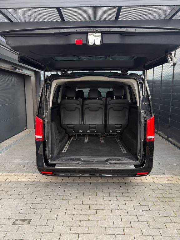 3. Bremsleuchte, Adaptives Bremslicht, Airbag Beifahrerseite, Airbag Fahrerseite, Anfahrhilfe (Berganfahr-Assistent), Anzeige für Waschwasserstand, Armlehnen Fahrgastraum, Außenspiegel asphärisch, beide, Außenspiegel elektr. verstell- und heizbar, beide, Außentemperaturanzeige, Befestigungsschienen für Dachträger, Beleuchtung im Haltegriff Fond mit Lesespot, BlueEfficiency-Paket, Bodenbelag: Teppich im Fahrerraum, Bodenbelag: Teppich im Lade-/Fahrgastraum, Bremsassistent, Bremssystem mit ABS+ASR, Chrom-Paket, Dachverkleidung, Design- und Ausstattungslinie Select, Einschaltautomatik für Fahrlicht, Einstiegsgriff hinten, Einstiegsleuchten, Fahrassistenz-System: Anfahr-Assistent (Berganfahr-Assistent), Fahrassistenz-System: Attention-Assist (Müdigkeitserkennungs-Sensor), Fahrassistenz-System: Pannenmanagement, Fahrassistenz-System: Seitenwind-Assistent, Fenster für hintere Türen / Heckklappe mit Wisch-/Waschanlage, Fenster im Lade-/FG-Raum: - feststehend, vorn links, Fenster im Lade-/FG-Raum: - feststehend, vorn rechts, Frontscheibe mit Scheibenantenne, Fußraumbeleuchtung vorn, Geschwindigkeits-Begrenzeranlage 210 km/h, Getriebe Automatik GTronic - (9-Stufen), Getränkehalter vorn, Gurtstraffer, Haltegriffe A-Säulen, Haltegriffe im Fond, Handschuhfach abschließbar, Harnstofftank (AdBlue): 24 Ltr., Heckklappe mit Verglasung, Heckscheibe heizbar, Heckscheibenwischer, Innen- und Umfeldbeleuchtung, Innenraumfilter: Pollenfilter, Innenverkleidung gehobene Ausführung, Karosserie/Aufbau: extra lang, Karosserie/Aufbau: Kombi Standard, Kindersicherung, Kombiinstrument mit Pixel-Matrix-Display, Komfort-Fahrwerk, Komfortbeleuchtung im Fahrgast-/Laderaum, Kommunikationsmodul (LTE) für digitale Dienste, Kopf-Airbag-System (Windowbag), Kopf-Schulter-Airbag (Thoraxbag) Fahrer-/Beifahrerseite, Lenkrad (Lenksäule mech. verstellbar), Lenkrad mit Multifunktion inkl. Reiserechner, Mercedes-Benz Notrufsystem, Modellpflege, Motor 2,0 Ltr. - 120 kW CDI KAT, Nebelschlussleuchte, PKW-Zulassung, PTC Heater, Radstand 3430 mm, Reifen 205/65 R16C 103/101 T, Reifendruck-Kontrollsystem, Rückspiegel innen, Schadstoffarm nach Abgasnorm Euro 6d, Scheibenwischer mit Regensensor, Schiebetür Lade-/Fahrgastraum rechts mit Verglasung, SCR-System (AdBlue-Technologie), Select, Sicherheitsgurt-System mit Warnanlage (Fahrer-/Beifahrerseite), Sitze im Fahrerhaus: Beifahrersitz Komfort, Sitze im Fahrerhaus: Fahrersitz Komfort, Sitze im Lade-/FG-Raum: 1.Reihe, 3er-Sitzbank Komfort, Sitze im Lade-/FG-Raum: 2.Reihe, 3er-Sitzbank Komfort, Sonnenblenden mit Spiegel (beleuchtet), Stoßfänger / Stoßf.-Leiste seitlich + Griff an Heckklappe lackiert, Umfeldleuchte in Heckklappe, Vlies-Batterie 92 Ah, Vorbereitung für DAB Radioempfang, Warmluftkanal zum Lade-/Fahrgastraum, Wartungsintervall-Anzeige Assyst, Wärmeschutzverglasung.