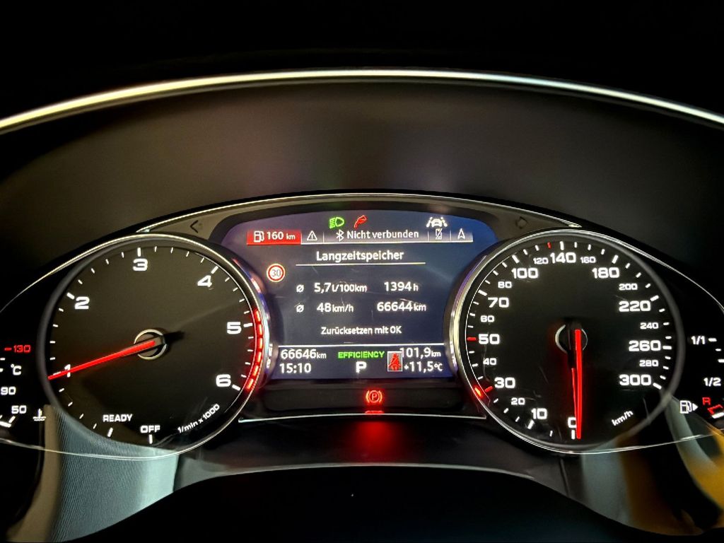 - Business-Paket (Assistenz-Paket Tour, Fahrassistenz-System: Fernlichtassistent, Fahrassistenz-System: Verkehrszeichenerkennung, Fahrassistenz-System: Adaptive Geschwindigkeitsregelanlage (Adaptive Cruise Control) mit Autom. Distanzregelung, Fahrassistenz-System: Notfall-Assistent mit automatischem Notruf, Fahrassistenz-System: Prädiktiver Effizienz-Assistent, Fahrassistenz-System: Ausweich-Assistent, Fahrassistenz-System: Abbiege-Assistent links, Fahrassistenz-System: Adaptiver Fahrassistent, Außenspiegel elektr. verstell-, heiz- und anklappbar, mit Abblendautomatik und Memory, Außenspiegel mit Bordsteinautomatik, rechts, Adaptive Scheibenwischer, beheizt, Bluetooth-Freisprecheinrichtung mit Spracherkennung (Audi Phone Box), Einparkhilfe plus vorn, seitlich und hinten, akustisch und optisch mit Umgebungsanzeige, Komfort-Klimaautomatik 4-Zonen, Sitzheizung vorn, Innenspiegel mit Abblendautomatik )