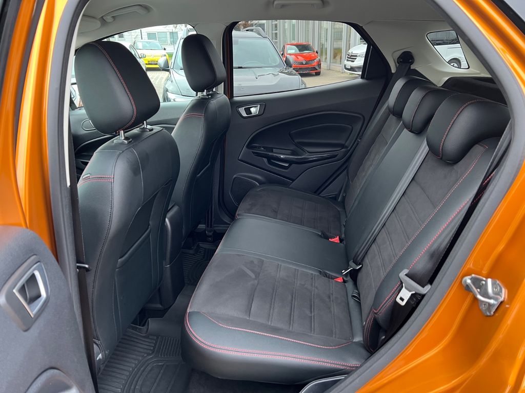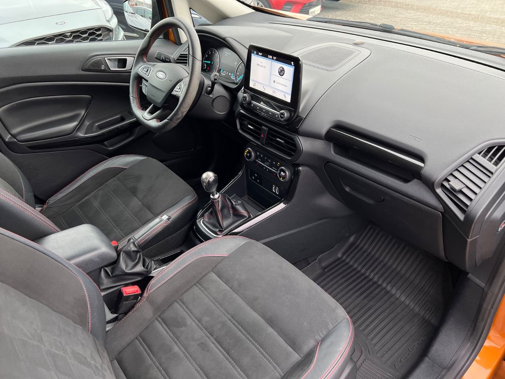 Entdecken Sie diesen gepflegten Ford EcoSport SUV aus dem Jahr 2018. Der Benzinmotor mit 998 ccm Hubraum und 140 PS bietet spritzige Fahrleistungen bei gleichzeitig sparsamen Verbrauch. Das Fahrzeug verfügt über ein manuelles Schaltgetriebe und Frontantrieb.Die auffällige orange Metallic-Lackierung in Kombination mit schwarzer Teillederausstattung verleiht dem EcoSport einen sportlichen Charakter. Mit nur einem Vorbesitzer und lückenloser Servicehistorie präsentiert sich dieses Fahrzeug in einem ausgezeichneten Zustand. Die Euro 6 Einstufung und grüne Umweltplakette garantieren freie Fahrt in allen Umweltzonen.