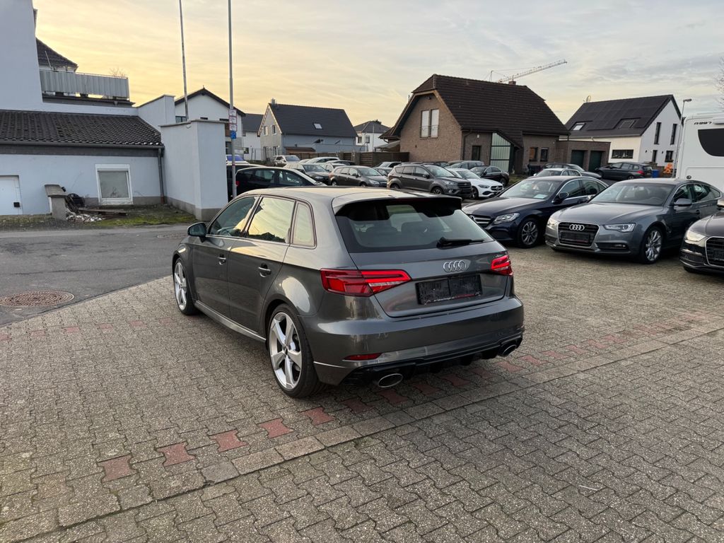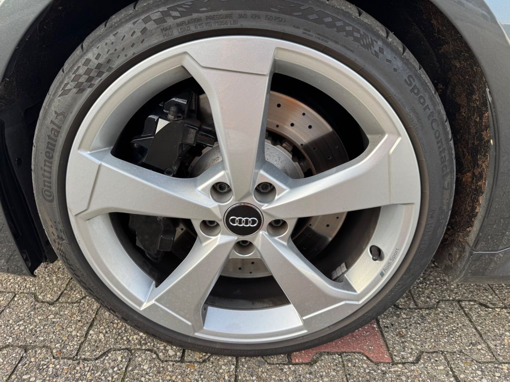 Ablage- und Gepäckraum-Paket, Adaptives Bremslicht, Airbag Fahrer-/Beifahrerseite, Antriebs-Schlupfregelung (ASR) mit EDS, Audi Drive Select, Bremsassistent, Bremssättel Schwarz lackiert, Dachhimmel Stoff, Dachkantenspoiler, Einparkhilfe vorn und hinten, akustisch und optisch mit selektiver Anzeige (APS Plus), Einstiegsleisten mit Aluminiumeinlage und Schriftzug, beleuchtet, Fahrassistenz-System: Bremsassistent (Folgekollision), Fahrer-Informations-System (FIS) mit Farbdisplay, Fußmatten Velours, Gepäckraumabdeckung / Rollo, Heckleuchten LED mit dynamischem Blinklicht, Innenausstattung: Aluminium-Optik, Innenausstattung: Dekoreinlagen 3D-Optik Luv, Isofix-Aufnahmen für Kindersitz, Karosserie: 4-türig, Kombiinstrument elektronisch, Komfort-Klimaautomatik 2-Zonen, Kopf-Airbag-System (Sideguard), Kotflügelverbreiterung, Lenkrad (Sport/Leder - 3-Speichen, unten abgeflacht) mit Multifunktion und Schaltfunktion, Licht-Paket, LM-Felgen, Motor 2,5 Ltr. - 294 kW 20V TFSI, Optik-Paket schwarz, Pedale und Fußstütze in Edelstahl, Progressivlenkung, Reifen-Reparaturkit, Reifenkontroll-Anzeige, RS-Frontstoßfänger Sport-Design, Rücksitzlehne geteilt/klappbar, Schadstoffarm nach Abgasnorm Euro 6d-TEMP, Schalt-/Wählhebelgriff Alcantara / Mikrofaser, Seitenairbag vorn, Sitzbezug / Polsterung: Leder Feinnappa mit Logo-Prägung in Vordersitzlehnen, Sportsitze vorn, Start/Stop-Anlage, Stoßfänger Sport-Design (S-line), Stoßfänger Sport-Design mit Diffusoreinsatz hinten, Universal-Schnittstelle Bluetooth, Wärmeschutzverglasung grün getönt
