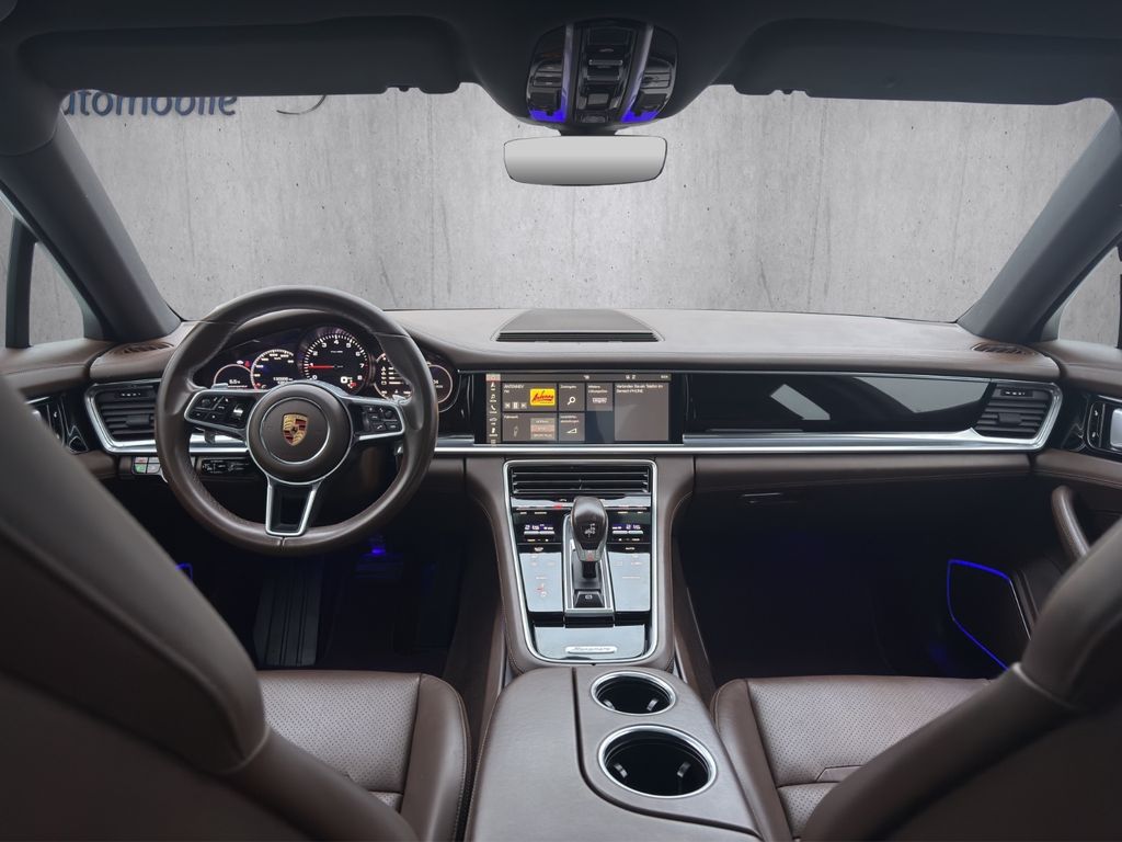 Sonderausstattung:Ablage-Paket, Ambiente-Beleuchtung fondorientiert, Außenspiegel mit Abblendautomatik, Fahrassistenz-System: Park-Assistent mit Rückfahrkamera, Fahrassistenz-System: Spurwechselassistent, Fensterzierleisten schwarz (Hochglanz), Fußmatten, Fzg. ohne Modellbezeichnung, Heckleuchten LED, abgedunkelt, Home-Link (Garagentoröffner), Innenausstattung: Glattleder, Serienlederfarbe, Kraftstofftank: 90 Ltr., LM-Felgen vorn/hinten: 9x19 / 10,5x19 (Panamera S Rad), Matrix-LED-Scheinwerfer inkl. Porsche Dynamic Light System Plus (PDLS+), Metallic-Lackierung, Panorama-Schiebedach zweiteilig vorn elektrisch, Radnaben - Abdeckungen Porschewappen farbig, Seitenairbag hinten, Sitzheizung vorn, Skisack, Sportendrohre 4-Rohr-Optik, schwarz, Standheizung, Türgriffe außen schwarz lackiert (Hochglanz), Vierradlenkung