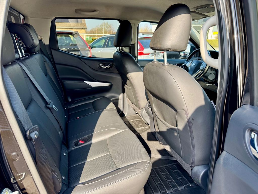 Airbag Beifahrerseite abschaltbar, Airbag Fahrer-/Beifahrerseite, Audiobedienung am Lenkrad, Ausstattungs-Paket: Nissan Connect Navigationssystem mit Around View Monitor, Automatische Fahrlichtschaltung, Außenspiegel elektr. anklappbar, Außenspiegel elektr. verstellbar, Außenspiegel heizbar, Außenspiegel mit Chromblende, Außentemperaturanzeige, Bremsassistent (Nissan Brake-Assist), Chromeinfassung für Nebelscheinwerfer, Coming-Home-Lichtfunktion (Friendly Lightning), Differentialsperre mit begrenztem Schlupf, Einparkhilfe hinten, Fahrassistenz-System: Autonomer Notbrems-Assistent, Fahrassistenz-System: Bergabfahr-Assistent, Fahrassistenz-System: Berganfahr-Assistent, Fahrer-Informations-System (FIS) mit Farbdisplay, Fensterheber elektrisch hinten, Frontscheibe mit Bandfilter oben, Gurtstraffer, Heckscheibe heizbar, Innenspiegel mit Abblendautomatik, Isofix-Aufnahmen für Kindersitz, Karosserie/Aufbau: Doppelkabine (Double-Cab), Karosserie/Aufbau: Pick-Up, Klimaautomatik 2-Zonen, Knieairbag Fahrerseite, Kopf-Airbag-System, Kopfstützen hinten, Lenksäule (Lenkrad) verstellbar, LM-Felgen, Luftdüsen hinten, Motor 2,3 Ltr. - 140 kW dCi Diesel KAT, Optik-Paket, Radioempfang digital (DAB), Radstand 3150 mm, Reserverad in Fahrbereifung, Schadstoffarm nach Abgasnorm Euro 6, Scheibenwischer mit Intervallschaltung, Schienensystem Lastenverankerung, Schmutzfänger hinten, Schmutzfänger vorn, Seitenairbag, Sitz vorn links elektr. verstellbar, Sitz vorn links höhenverstellbar, Sitzbezug / Polsterung: Leder, Sitzheizung vorn, Start-Stop-Knopf, Steckdose (12V-Anschluß), Stoßfänger hinten verchromt, Stoßfänger vorn Wagenfarbe, Trittbretter seitlich, Verglasung hinten abgedunkelt
