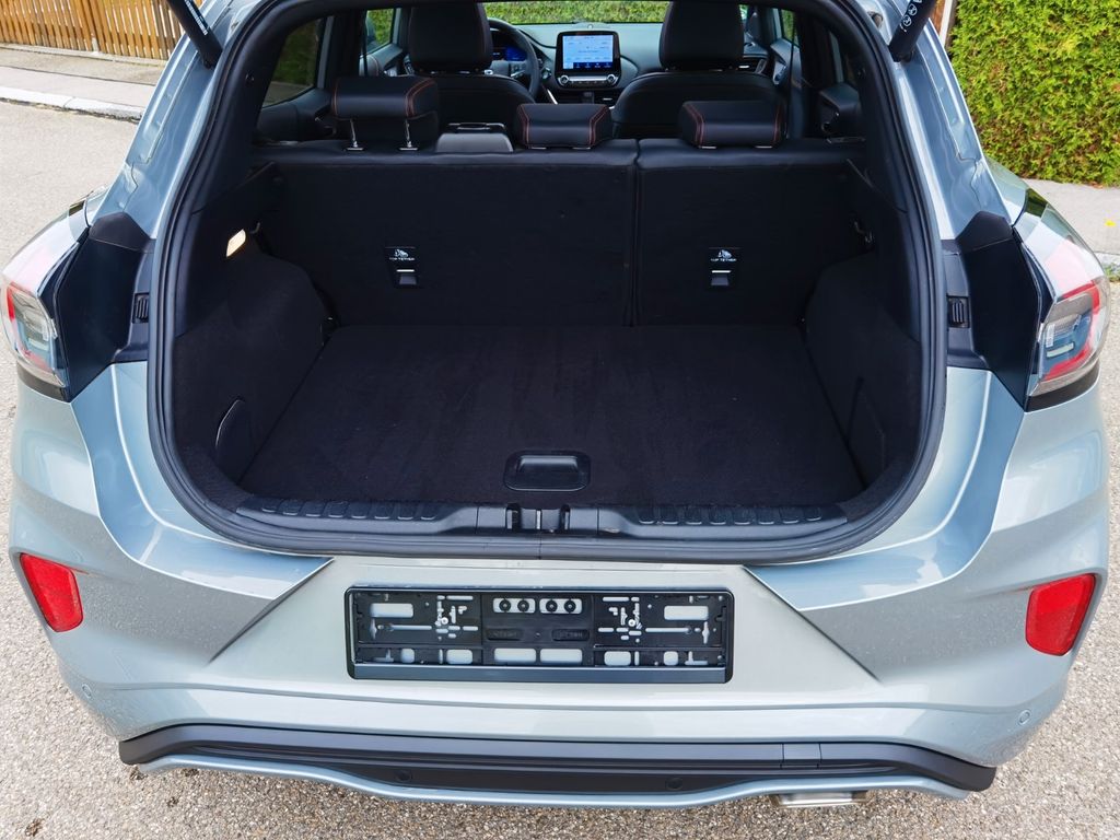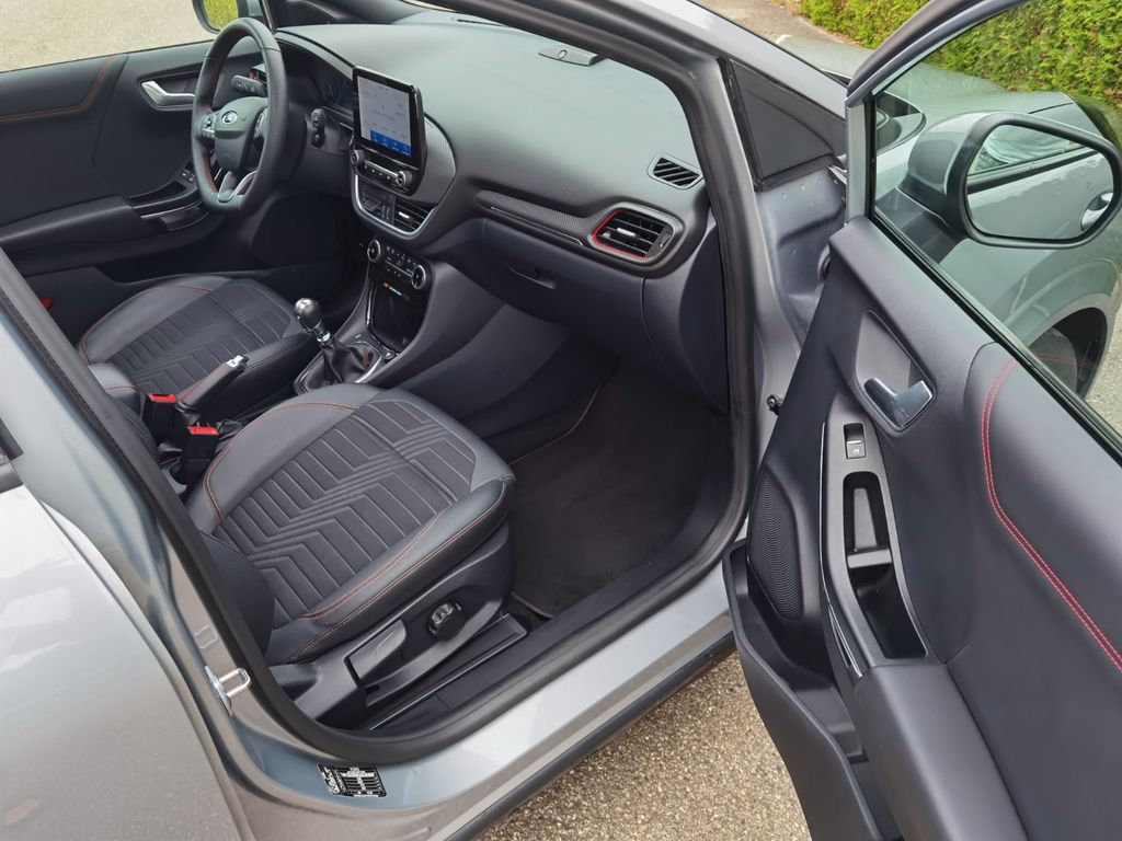 Ambiente-Beleuchtung vorn (LED), Antischlupfregelung (ASR), Audio-Navigationssystem Ford mit AppLink, Außenspiegel elektr. anklappbar, Außenspiegel elektr. verstell- und heizbar, Body-Styling-Paket, Dachhimmel Stoff, dunkel, Eco-Anzeige für verbrauchsoptimiertes Fahren (EcoCoach), Einparkhilfe hinten, Fahrassistenz-System: Berganfahr-Assistent (Hill-Holder), Fahrassistenz-System: Falschfahrer-Warnfunktion, Fahrassistenz-System: Fernlichtassistent (Scheinwerfer mit Abblendautomatik), Fahrassistenz-System: Notbrems-Assistent, Fahrassistenz-System: Post-Collision-System, Fahrassistenz-System: Pre-Collision-System, Fahrassistenz-System: Spurhalteassistent mit Müdigkeitserkennungs-Sensor, Farbdisplay für Bordcomputer, Fensterheber elektrisch vorn + hinten mit Komfortschließung, FordPass Connect inkl. eCall, Fußmatten Teppich, Getriebe 6-Gang - Typ: 6MX65, Heckleuchten LED, Induktionsladeschale für mobile Endgeräte, Innenraumfilter: Staub- und Pollenfilter, Intelligent Protection System (IPS), Intelligenter Geschwindigkeits-Begrenzer, Isofix-Aufnahmen für Kindersitz, Karosserie: 5-türig, Kombiinstrument Digitalanzeige 12,3 Zoll, Komfort-Paket, Kopfstützen hinten mechan. verstellbar (3 Stück), Lackierung Blazer-Blau, Laderaumboden variabel (Ford Megabox), Lendenwirbelstütze vorn, Lenkrad (Sport/Leder, ST), Lenksäule (Lenkrad) höhen-/längsverstellbar, Mild-Hybrid 92 kW (Motor 1,0 Ltr. - 92 kW EcoBoost), My Key (2. Fahrzeugschlüssel programmierbar), Nebelscheinwerfer LED, Otto-Partikelfilter (OPF), Pedale Aluminium, Radstand 2588 mm, Reifendruck-Kontrollsystem, Rücksitzlehne geteilt/klappbar (60:40), Schadstoffarm nach Abgasnorm Euro 6d, Scheinwerfer LED, Scheinwerfer-Assistent mit Tag-/Nachtsensor, Sitzbezug / Polsterung: Kunstleder, Sitze vorn höhenverstellbar, Sonnenblende links mit Spiegel (beleuchtet), Sonnenblende rechts mit Spiegel (beleuchtet), Sport-Fahrwerk, Sportsitze vorn, Türgriffe außen Wagenfarbe, Verglasung hinten abgedunkelt (Privacy Glass).