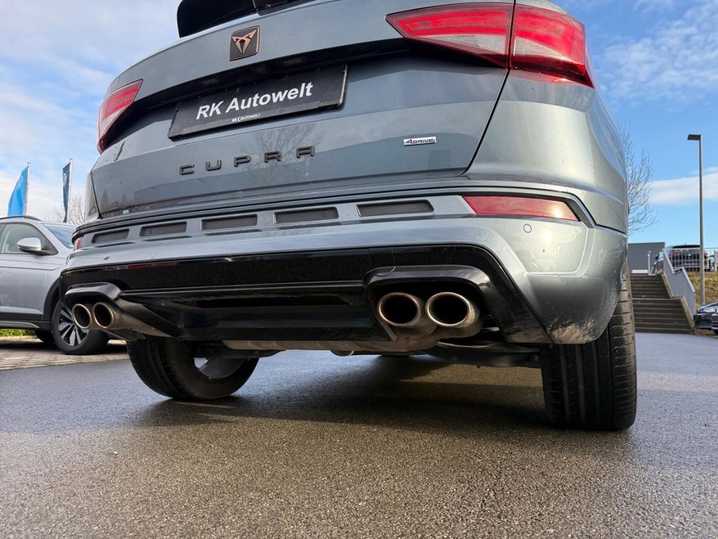 - Weiteres: Komfortöffnung Heckklappe (Virtuelles Pedal) Gepäckraumklappe mit sensorgesteuerter Öffnung (inkl. Keyless Access mit SAFELOCK), Preisnachlass-Paket, Advanced Comfort & Security Pack 2:, Fahrassistenz-Paket: Stau- und Notfallassistent, Mit Verkehrszeichenerkennung, Front Assist inkl. City ANB für ACC high Automatische Distanzregelung (mit follow to stop) und Speed-Limiter, Fahrassistenz-System: Totwinkel-Assistent mit Auspark-Assistent, Fahrassistenz-System: Spurhalteassistent, DAB (Digital Audio Broadcasting) Digitaler Radioempfang, Soundsystem mit Subwoofer branded Ausführung 2 BeatsAudio: Premium-Lautsprecher, Subwoofer, 340 W-Verstärker und Surround-Technologie, Ablagen-Paket, Stau-/Ablagefach unter Sitz vorn rechts, Frontscheibe in Wärmeschutzglas beheizbar Beheizbare Frontscheibe, nichtreflektierend, Black-Paket, Winterpaket: Sitzheizung vorn, Scheinw.-Reinigungsanlage, beheizbares Scheibenwischw.,beheizbare Aussenspiegel, Platzsparendes Notrad,Radial-Bauweise (5-Loch) 18-Reserverad als Notrad, Notfallwerkzeug, Wagenheber, Diebstahlwarnanlage, Rodium Grau, Fahrassistenz-System: Adaptive Fahrwerksregelung (DCC), Leichtmetallräder 8J x 19, Lenkrad (Sport/Leder) mit Multifunktion, Lenkrad mit Schaltwippen/-tasten, Servolenkung elektro-mechanisch, Differenzialsperre ( XDS ) Dynamische Traktions Hilfe, Elektron. Stabilitätskontrolle (ESC), Fahrassistenz-System: Fahrprofilauswahl (SEAT Drive Profile), Fahrassistenz-System: Berganfahr-Assistent, Abgaskonzept, EU6 BG, Start/Stopp-Anlage mit Rekuperation, Otto-Partikelfilter (OPF), Doppelendrohr Auspuffanlage, links/rechts, Karosserie: 5-türig, Allradantrieb, Radstand 2631 mm, 7-Gang-Automatikgetriebe Allrad A7A, Motor 2,0 Ltr. - 221 kW 16V TSI, Licht- und Sicht-Paket, Lichtassistent (Coming Home, Leaving Home), Scheibenwischer-Intervallschaltung mit Licht/Regensensor, Sicherheitsinnenspiegel automatisch abblendbar, Kühlergrill schwarz, Einstiegleisten in den Türausschnitten (beleuchtet), Außenspiegel elektr. verstell-, heiz- und anklappbar mit Spiegelabsenkung und Welcome Light, Dachreling schwarz, Scheinwerfer Voll-LED, Blinkleuchten LED in Außenspiegel integriert, Heckleuchten LED, Tagfahrlicht LED, Schriftzug auf der Heckklappe, Radlaufabdeckung vorn und hinten lackiert, Fensterzierleisten schwarz, Seitenairbag, Airbag Beifahrerseite abschaltbar, Mittelkonsole vorn mit Mittelarmlehne, Becherhalter, Ablagebox und Luftausströmer hinten, Ablagefach unterhalb Armaturentafel, Mittelarmlehne hinten, Gepäckraumabdeckung, klappbar, Heckspoiler Wagenfarbe (Dachspoiler), Stoßfänger vorn Cupra-Design, Stoßfänger hinten Cupra-Design mit Diffusor, Wärmeschutzverglasung