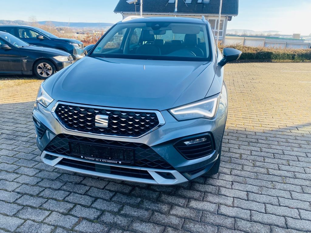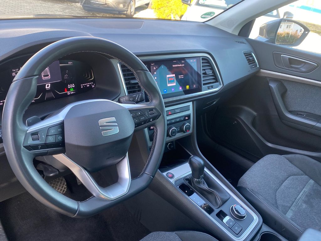 3. Bremsleuchte, Ablagetasche an Vordersitzlehnen, Airbag Beifahrerseite abschaltbar, Airbag Fahrer-/Beifahrerseite, Antriebs-Schlupfregelung (ASR), Außenspiegel elektr. verstell-, heiz- und anklappbar mit Spiegelabsenkung, Außenspiegel Wagenfarbe, Blinkleuchten LED in Außenspiegel integriert, Bluetooth-Schnittstelle mit Freisprecheinrichtung integriert, Bordcomputer, Brillenfach, Design-Paket Exterieur, silber, Doppeltonhorn, Einparkhilfe hinten, Einstiegsleisten beleuchtet, Elektron. Querdifferentialsperre (XDS), Fahrassistenz-System: Berganfahr-Assistent (Hill-Holder), Fahrassistenz-System: Fahrprofilauswahl (SEAT Drive Profile), Fahrassistenz-System: Müdigkeitserkennung, Fahrassistenz-System: Spurhalteassistent, Fahrassistenz-System: Umfeldbeobachtungssystem (Front assist) mit City-Notbremsfunktion, Fahrassistenz-System: Verkehrszeichenerkennung, Fensterheber elektrisch vorn + hinten mit Komfortschaltung, Gepäckraumabdeckung / Rollo, Handschuhfach beleuchtet, Heckleuchten LED mit dynamischem Blinklicht, Innenraumlicht-Paket LED, Isofix-Aufnahmen für Kindersitz, Karosserie: 5-türig, Klimaanlage Climatronic 2-Zonen, Knieairbag Fahrerseite, Kofferraumbeleuchtung, Kombiinstrument digital (virtual cockpit), Kopf-Airbag-System, Lendenwirbelstütze Sitz vorn links, verstellbar, Lendenwirbelstütze Sitz vorn rechts, verstellbar, Licht- und Sicht-Paket, LM-Felgen, Mittelarmlehne hinten, Mittelkonsole vorn mit Mittelarmlehne, Becherhalter, Ablagebox und Luftausströmer hinten, Modellpflege, Motor 1,5 Ltr. - 110 kW 16V TSI ACT, Nebelscheinwerfer LED mit Abbiegelicht, Notrufsystem, Otto-Partikelfilter (OPF), Parkbremse elektrisch mit Auto-Hold-Funktion, Radstand 2638 mm, Reifen-Reparaturset, Reifenkontroll-Anzeige, Rückfahrkamera, Rücksitzlehne geteilt/klappbar (1/3-2/3), Schadstoffarm nach Abgasnorm Euro 6e, Schalt-/Wählhebelgriff Leder, Scheinwerfer Voll-LED, Schließ-/Startsystem Kessy, SEAT Media-System Plus, Seitenairbag, Seitenscheiben hinten und Heckscheibe abgedunkelt, Sitz vorn links höhenverstellbar, Sitz vorn rechts höhenverstellbar, Sitzbezug / Polsterung: Stoff, Sonnenblende links mit Spiegel (beleuchtet), Sonnenblende rechts mit Spiegel (beleuchtet), Start/Stop-Anlage, Stau-/Ablagefach unter Sitz vorn links, Steckdose (12V-Anschluß) vorn, USB-Ladeanschlüsse (2-fach, Typ C) für 2.Sitzreihe, Verzurrösen Koffer-/Laderaum, Wärmeschutzverglasung