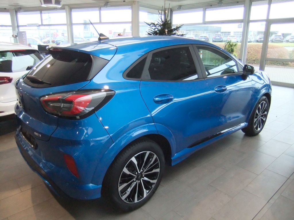 Lackierung Dynamic Blau-Metallic, Verglasung hinten abgedunkelt, Ambiente-Beleuchtung vorn (LED), Antischlupfregelung (ASR), Audio-Navigationssystem Ford mit AppLink, Außenspiegel elektr. anklappbar, Außenspiegel elektr. verstell- und heizbar, Body-Styling-Paket, Dachhimmel Stoff, dunkel, Eco-Anzeige für verbrauchsoptimiertes Fahren (EcoCoach), Einparkhilfe hinten, Berganfahr-Assistent, Falschfahrer-Warnfunktion, Fernlichtassistent (Scheinwerfer mit Abblendautomatik), Notbrems-Assistent, Post-Collision-System, Pre-Collision-System, Spurhalteassistent mit Müdigkeitserkennungs-Sensor, Verkehrsschildassistent, Farbdisplay für Bordcomputer, Fensterheber elektrisch vorn + hinten mit Komfortschließung, FordPass Connect inkl. eCall, Fußmatten Teppich, Getriebe 6-Gang, Heckleuchten LED, Innenraumfilter: Staub- und Pollenfilter, Intelligent Protection System (IPS), Intelligenter Geschwindigkeits-Begrenzer, Isofix-Aufnahmen für Kindersitz, Kombiinstrument Digitalanzeige 12,3 Zoll, Kopfstützen hinten mechan. verstellbar (3 Stück), Laderaumboden variabel (Ford Megabox), Lendenwirbelstütze Sitz vorn links, Lenksäule (Lenkrad) höhen-/längsverstellbar, LM-Felgen, My Key (2. Fahrzeugschlüssel programmierbar), Nebelscheinwerfer LED, Otto-Partikelfilter (OPF), Pedale Aluminium, Reifen-Reparaturkit, Reifendruck-Kontrollsystem, Rücksitzlehne geteilt/klappbar (60:40), Scheinwerfer LED, Scheinwerfer-Assistent mit Tag-/Nachtsensor, Sitze vorn höhenverstellbar, Sonnenblende links mit Spiegel (beleuchtet), Sonnenblende rechts mit Spiegel (beleuchtet), Sport-Fahrwerk, Sportsitze vorn, Standard Variante, Start/Stop-Anlage, Türgriffe außen WagenfarbeAusstattung:
