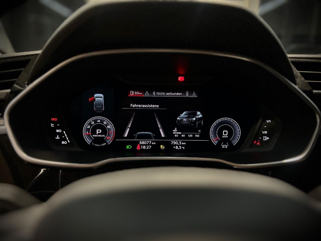 Sonderausstattung:Audi connect (Notruf- und Assistance-System), Audi connect (Remote / Control), Audi connect plus (Internetbasierende Dienste), Außenspiegel elektr. verstell-, heiz- und anklappbar, mit Abblendautomatik und Bordsteinautomatik, Fahrassistenz-System: Anfahr-Assistent (hold assist), Fahrassistenz-System: Parklenkassistent, Gepäckraumklappe elektr. betätigt (öffnen + schliessen), Innenausstattung: Aluminium-Optik, Innenspiegel mit Abblendautomatik, Kombiinstrument digital (virtual cockpit plus), Komfort-Klimaautomatik 3-Zonen, Komfortschlüssel mit sensorgesteuerter Heckklappenentriegelung und Diebstahl-Warnanlage, Kontur / Ambientebeleuchtungs-Paket (plus), Lendenwirbelstützen vorn, elektr. verstellbar, Lenkrad (Leder - 3-Speichen) mit Multifunktion plus und Schaltfunktion, LM-Felgen 7x19 (20-Speichen V-Design, kontrastgrau, teilpoliert), Matrix-LED-Scheinwerfer, Multi-Media-Interface MMI Navigation Plus, Rückfahrkamera, Rücksitzlehne geteilt/klappbar, verschiebbar mit Mittelarmlehne (40:20:40), Sitz vorn links elektr. verstellbar, Sitzheizung vorn, Sonderlackierung Daytonagrau Perleffekt, Sound-System Bang & Olufsen, Steckdose (12V-Anschluß) im Fond (Mittelkonsole), Verglasung hinten abgedunkelt (Privacyverglasung)