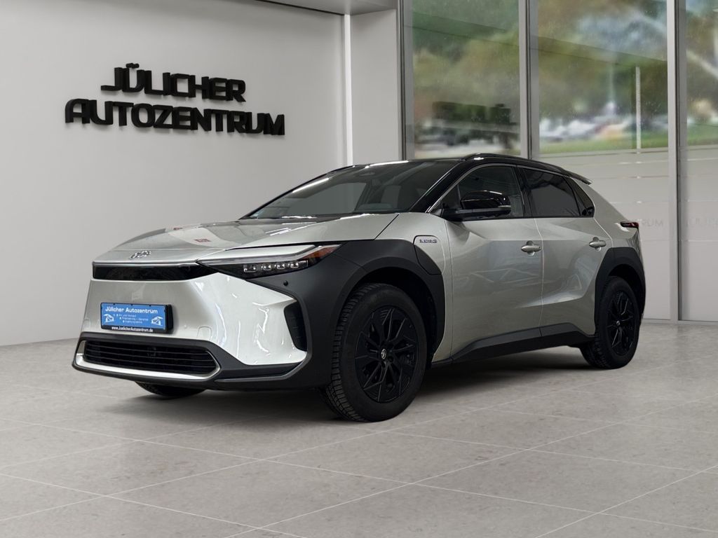 Airbag Beifahrerseite abschaltbar, Airbag Fahrer-/Beifahrerseite, Akustischer Fußgängerschutz (Außensound, AVAS), Anzeigeinstrumente digital, Audiobedienung am Lenkrad, Autom. Begleitfunktion der Beleuchtung (Follow me home, FMH), Außenspiegel elektr. anklappbar, Comfort-Paket, DAB-Tuner (Radioempfang digital), Dachantenne, Elektromotor 160 kW, Fahrassistenz-System: Bergabfahrkontrolle (HDC / DAC), Fahrassistenz-System: Berganfahrkontrolle (HAC), Fensterheber elektrisch vorn + hinten, Freisprechanlage Bluetooth, Freisprechanlage mit Audiostummschaltung und Sprachsteuerung, Gepäckraumboden 2-fach verstellbar, Getriebe für Elektrofahrzeug, Heckleuchten LED, HV-Batterie 71,4 kWh, Innenbeleuchtung LED, Innenspiegel mit Abblendautomatik, Isofix-Kindersitz-System, Karosserie: 5-türig, Klimaautomatik 2-Zonen, Knieairbag Fahrerseite, Kopf-Airbag-System, Kopfstützen vorn und hinten verstellbar, Lenksäule (Lenkrad) verstellbar, Panorama-Glasdach, Parkbremse elektrisch (EPB), Radstand 2850 mm, Reifen-Reparaturkit, Reifendruck-Kontrollsystem, Rücksitz geteilt, Rücksitz klappbar, Seitenairbag hinten, Seitenairbag vorn, Sitz vorn rechts höhenverstellbar, Smartphone-Integration x-connect (Apple CarPlay und Android Auto), Sonnenblenden mit Spiegel (beleuchtet), Technik-Paket, Toyota Safety Sense, Warnanlage für Sicherheitsgurte hinten, Warnanlage für Sicherheitsgurte vorn, Wärmeschutzverglasung getönt