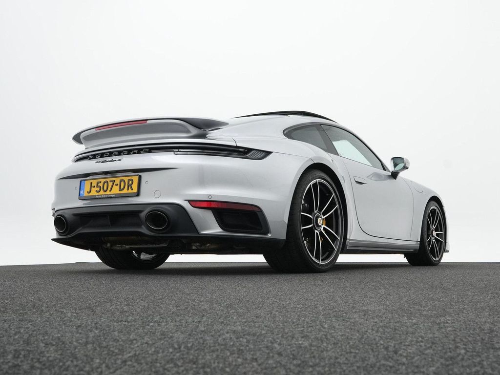 This 911 Turbo S was originally delivered in the Netherlands by Porsche Centrum Amsterdam and has also been fully dealer-maintained by Porsche Centrum Amsterdam. On September 23, 2024, the previous owner had a major service performed at 41,840 km. The car is painted in a sporty GT Silver Metallic with black leather upholstery and chalk stitching.