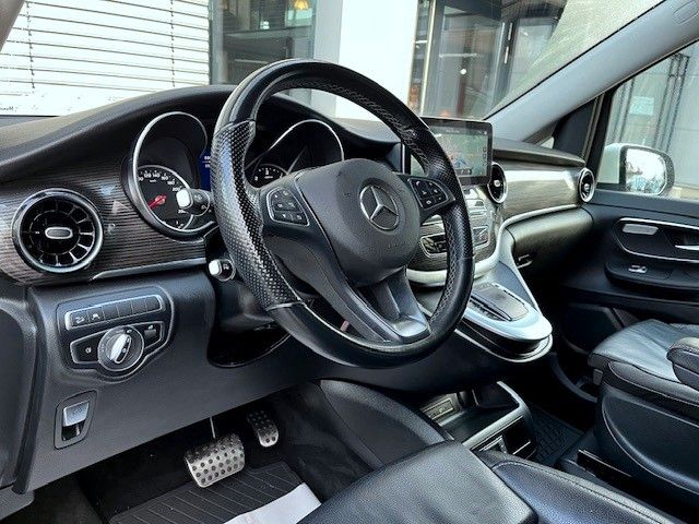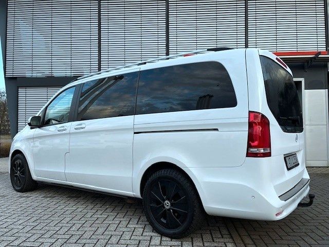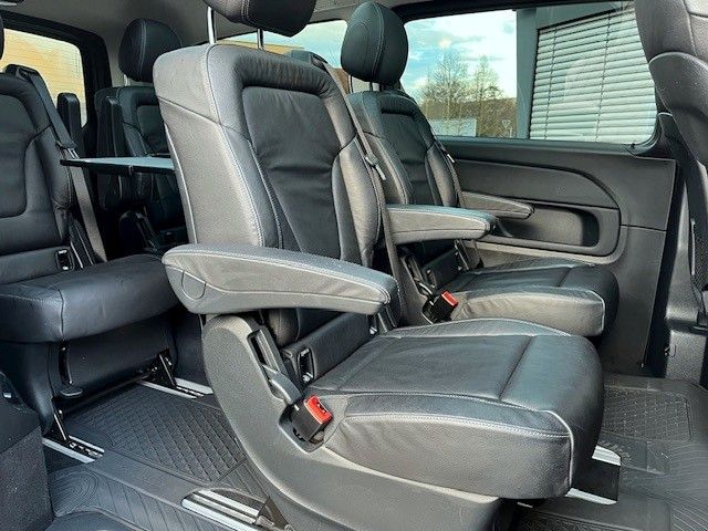 Sonderausstattung:Airmatic (Luftfederung), Akustik-Paket, Ambiente-Beleuchtung Armaturentafel, Anhängelast 2500 kg, Batterie zusätzlich (verstärkt), Dachreling (Aluminium eloxiert), Design-Paket Interieur, Fahrassistenz-Paket Standard, Fahrassistenz-System: Fernlichtassistent Plus, Fahrassistenz-System: Verkehrs-Informations-System Live Traffic, Fahrassistenz-System: Verkehrszeichenerkennung, Getränkehalter hinten, Heckklappe mit automatischem Öffnungs- und Schließsystem, Heckscheibe aufstellbar, Hold-Funktion, Innenausstattung: Zierteile Doppelstreifen Optik, Innenraumlicht-Paket, Intelligent Light System LED, Kraftstofftank: vergrößert, Mittelkonsole vorn mit 1 DIN-Schacht, Multimediasystem MBUX (Touchscreen 10,25"), Navigationssystem für Multimediasystem MBUX, Panorama-Schiebedach vorn elektrisch, mit Panoramadach hinten, Scheibenwaschanlage beheizt, Schiebetür Lade-/Fahrgastraum links, Schiebetür links elektrisch, Schiebetür rechts elektrisch, Sitz-Komfort-Paket, Sitzausstattung: Tisch zwischen 1. + 2. Rücksitzreihe, Sitze im Fahrerhaus: Fahrersitz mit Lendenwirbelstütze, Smartphone-Integration (Apple CarPlay und Android Auto), Trennrelais bei Batterie zusätzlich, Zul. Gesamtgewicht 3,20 t, Zusatzheizung (Luft) mit Zeitschaltuhr