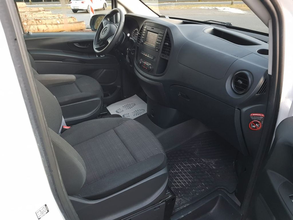 3-Tasten-Fernbedienung für Zentralverriegelung, 3. Bremsleuchte, Adaptives Bremslicht, Airbag Beifahrerseite, Airbag Fahrerseite, Anfahrhilfe (Berganfahr-Assistent), Außenspiegel asphärisch, beide, Außentemperaturanzeige, Befestigungsschienen für Dachträger, Bodenbelag: Fahrgastraum TPO, Bremsassistent, Bremssystem mit ABS+ASR, Fahrassistenz-System: Attention-Assist (Müdigkeitserkennungs-Sensor), Fahrassistenz-System: Pannenmanagement, Fahrassistenz-System: Seitenwind-Assistent, Frontscheibe mit Scheibenantenne, Generator 150 A, Getränkehalter hinten, Getränkehalter vorn, Gurtstraffer, Haltegriff Beifahrerseite, Handschuhfach abschließbar, Karosserie/Aufbau: Kasten Standard, Karosserie/Aufbau: Kompakt, Kommunikationsmodul (LTE) für digitale Dienste, Lastenverankerung / Verzurrösen, Mercedes-Benz Notrufsystem, Motor 2,1 Ltr. - 100 kW CDI KAT, Nebelschlussleuchte, Radstand 3200 mm, Rückspiegel innen, Schadstoffarm nach Abgasnorm Euro 6, Schiebetür Lade-/Fahrgastraum rechts, Sicherheitsgurt-System mit Warnanlage (Fahrer-/Beifahrerseite), Sitzbezug / Polsterung: Stoff, Stahlfelgen 6,5x16, Verkleidung Fenstersäulen, Verkleidung im Lade-/FG-Raum: Hartfaser halbhoch, Verzurrschienen im Laderaum - Seitenwand an Dachrahmen, Wartungsintervall-Anzeige Assyst, Zul. Gesamtgewicht 2,80 t