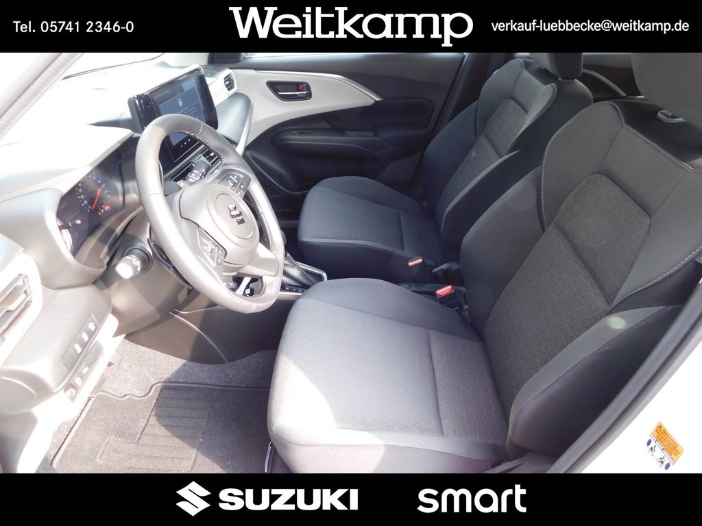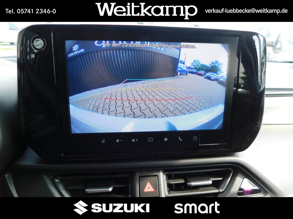 - Müdigkeitserkennung, Klimaautomatik, Adaptiver Tempomat, Lichtsensor, Spurhaltesystem+Lenkeingriff, Ausparkassistent (RCTA), Audio-System+Smartphone link, 16''-Alufelgen, Toter Winkel-Warnsystem, Metallic Lackierung alt. price, Guide me light-Funktion, Metallic-Lackierung, DAB Radio, 2tone Lackierung, 2tone Lackierung alt. price, Dual Sensor Break Support, Aussenspiegel elek.verstellbar, Fernlichtassistent, Beheizbare Außenspiegel, ISOFIX, Funkfernbedienung, Keyless start, Spurhaltewarnsystem, LED-Tagfahrlicht, LED Scheinwerfer, Lichtsensor, Lederlenkrad, Navigationssystem, Einparkhilfe hinten, Abgedunkelte Scheiben hinten, el. Fensterheber vorne/hinten, Rückfahrkamera, Suzuki Connect, Sitzheizung, SHVS Mild Hybrid System, Reifendruckkontrollanzeige, Verkehrszeichenerkennung, USB Anschluss, Front-/Seiten-/Vorhangairbags, 6 Lautsprecher
