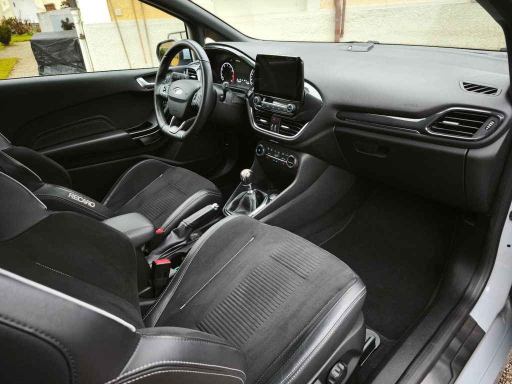 Airbag Beifahrerseite abschaltbar, Ambiente-Beleuchtung vorn (LED), Auspuffanlage mit Klappensteuerung, Außenspiegel elektr. verstell- und heizbar, Außenspiegel Wagenfarbe, Blinkleuchte in Außenspiegel integriert, Bord-/Verbrauchscomputer, Brillenfach in Dachhimmel / Dachkonsole integriert, Dachhimmel Stoff, Dachspoiler (große Ausführung) Wagenfarbe, Doppelendrohr Auspuffanlage, Elektr. Bremskraftverteilung (EBD), Fahrassistenz-System: Berganfahr-Assistent (Hill-Holder), Fahrassistenz-System: Notbrems-Assistent, Fahrassistenz-System: Spurhalteassistent, Frontschürze Wagenfarbe, Fußmatten Velours - 2. Sitzreihe, Fußmatten Velours - vorn, Handbremshebelgriff Leder, Heckschürze, Innenraumfilter: Staub- und Pollenfilter, Intelligent Protection System (IPS), Isofix-Aufnahmen für Kindersitz, Karosserie: 3-türig, Kopfstützen hinten mechan. verstellbar (3 Stück), Kühlergrill im Sport-Design, Lenkrad (Sport/Leder, ST), Lenksäule (Lenkrad) höhen-/längsverstellbar, Leseleuchte vorn, Motor 1,5 Ltr. - 147 kW EcoBoost KAT, My Key (2. Fahrzeugschlüssel programmierbar), Nebelscheinwerfer mit statischem Abbiegelicht, Otto-Partikelfilter (OPF), Reifen-Reparaturkit, Reifendruck-Kontrollsystem, Rücksitz geteilt, Rücksitzlehne klappbar, Schadstoffarm nach Abgasnorm Euro 6, Schadstoffarm nach Abgasnorm Euro 6d-TEMP, Schalt-/Wählhebelgriff Leder, Schaltpunktanzeige, Scheinwerfer mit Ausschaltverzögerung, Scheinwerfer-Assistent mit Tag-/Nachtsensor, Seitenschweller Wagenfarbe, Sitz vorn links höhenverstellbar, Sonnenblende links mit Spiegel, Sonnenblende rechts mit Spiegel, Sport-Fahrwerk, Start/Stop-Anlage, Türgriffe außen Wagenfarbe, Verglasung getönt, Warnanlage für Sicherheitsgurte hinten