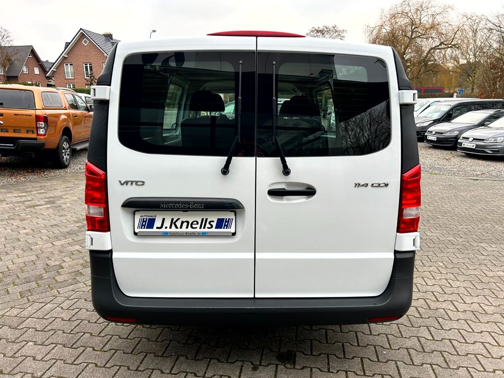 3. Bremsleuchte, Adaptives Bremslicht, Airbag Beifahrerseite, Airbag Fahrerseite, Anfahrhilfe (Berganfahr-Assistent), Anzeige für Waschwasserstand, Ausführung: Vito Mixto, Außenspiegel asphärisch, beide, Außenspiegel mech. von innen verstellbar, beide, Außentemperaturanzeige, Befestigungsschienen für Dachträger, BlueEfficiency-Paket, Bremsassistent, Bremssystem mit ABS+ASR, Deckenleuchte im Laderaum, Fahrassistenz-System: Attention-Assist (Müdigkeitserkennungs-Sensor), Fahrassistenz-System: Pannenmanagement, Fahrassistenz-System: Seitenwind-Assistent, Fenster im Lade-/FG-Raum: - feststehend, vorn links, Fenster im Lade-/FG-Raum: - feststehend, vorn rechts, Frontscheibe mit Scheibenantenne, Generator 200 A, Geschwindigkeits-Begrenzeranlage 210 km/h, Getriebe Automatik GTronic - (9-Stufen), Getränkehalter vorn, Gurtstraffer, Handschuhfach abschließbar, Harnstofftank (AdBlue): 24 Ltr., Holzfussboden im Laderaum, Karosserie/Aufbau: extra lang, Karosserie/Aufbau: Kasten Standard, Kindersicherung, Kommunikationsmodul (LTE) für digitale Dienste, Lenkrad (Lenksäule mech. verstellbar), Lenkrad mit Multifunktion inkl. Reiserechner, LKW-Zulassung, Mercedes-Benz Notrufsystem, Modellpflege, Motor 2,0 Ltr. - 100 kW CDI KAT, Nebelschlussleuchte, Radstand 3430 mm, Rückspiegel innen, Schadstoffarm nach Abgasnorm Euro 6d, Schiebetür Lade-/Fahrgastraum rechts mit Verglasung, SCR-System (AdBlue-Technologie), Sicherheitsgurt-System mit Warnanlage (Fahrer-/Beifahrerseite), Sitzbezug / Polsterung: Stoff, Sitze im Fahrerhaus: Fahrersitz verstellbar, Stahlfelgen 6,5x16, Verkleidung Fenstersäulen, Verkleidung im Lade-/FG-Raum: Hartfaser halbhoch, Vlies-Batterie 92 Ah, Warmluftkanal zum Lade-/Fahrgastraum, Wartungsintervall-Anzeige Assyst, Wärmeschutzverglasung