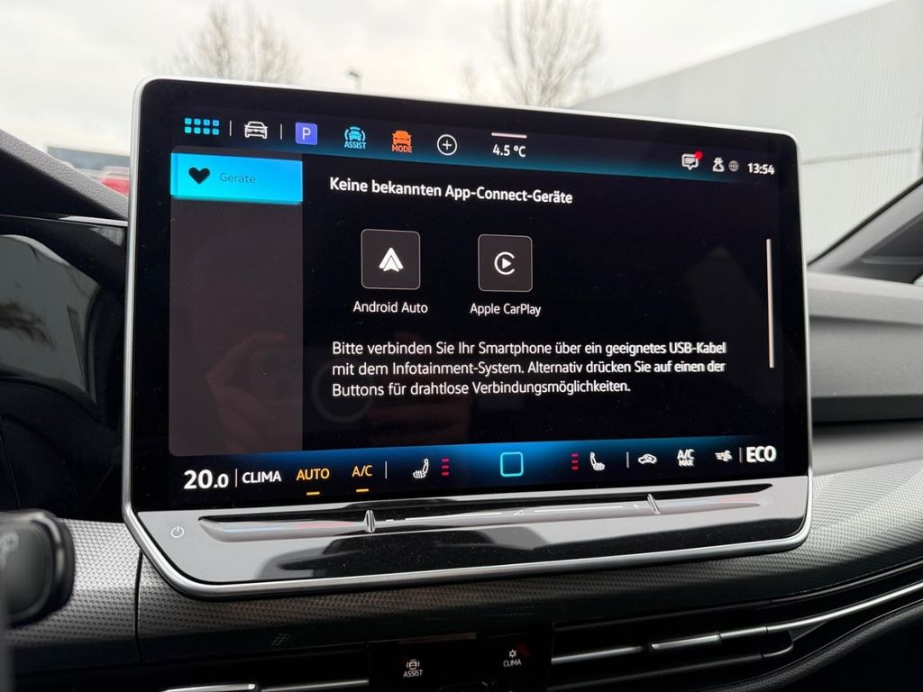 - Entertainment: Navigationssystem, Radio, USB-Anschluss, Bluetooth, Freisprecheinrichtung, Apple CarPlay, Android Auto, Sprachsteuerung, DAB, Touchscreen, Induktionsladen für Smartphones
