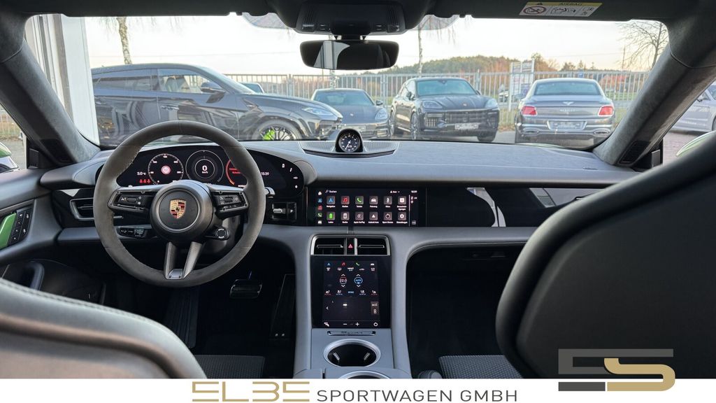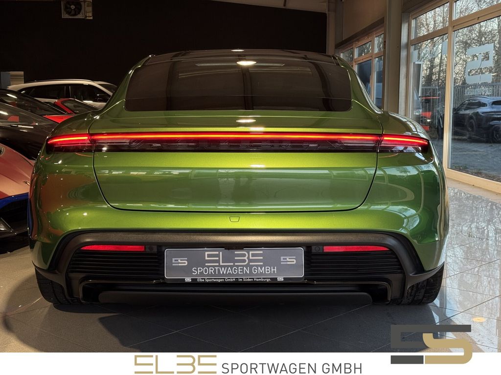 Herzlich Willkommen bei Elbe Sportwagen, Ihrem Premiumhändler seit 15 Jahren.Porsche Taycan GTS in außergewöhnlicher Außenfarbe mambagrün metallic mit VOLLLEDER Interieur Schwarz und Carbon im Neuwagenzustand und VOLLAUSSTATTUNG.