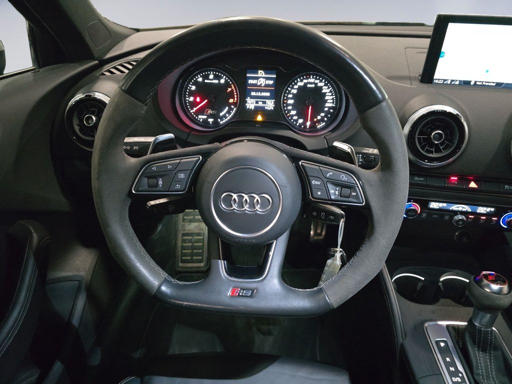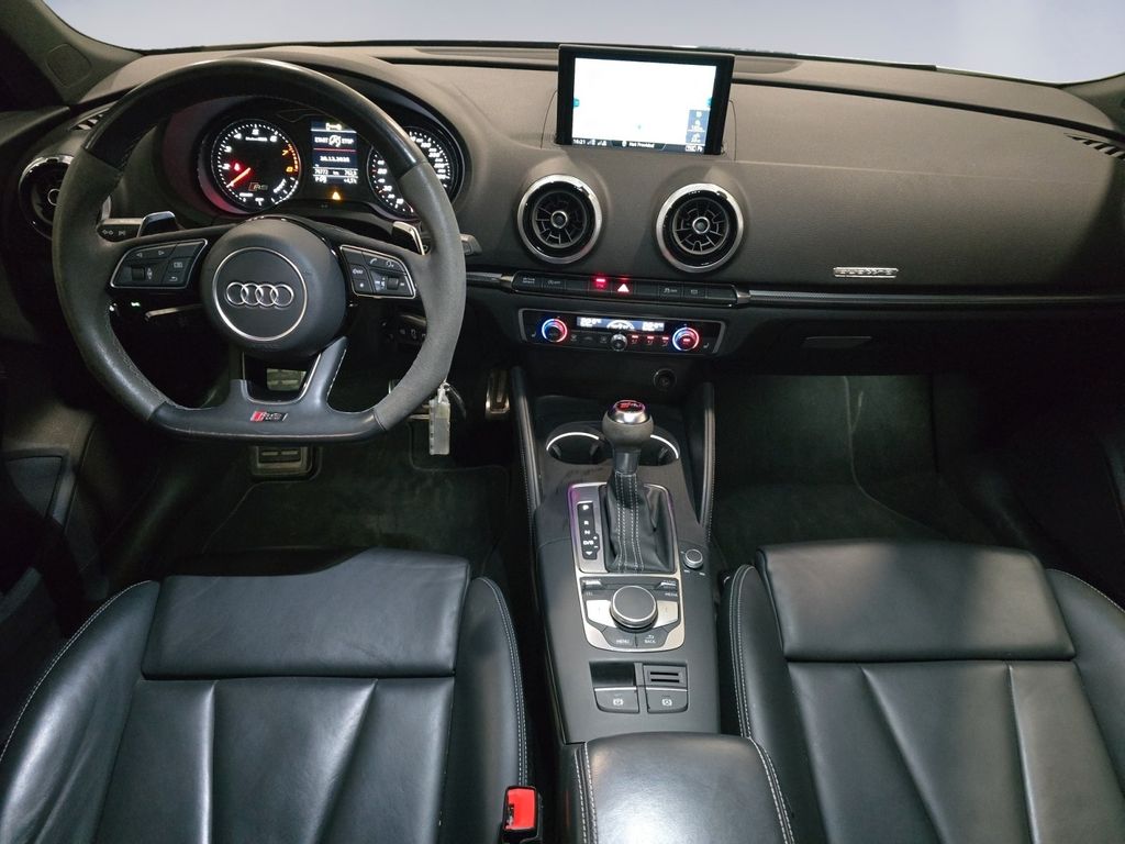 Ablage- und Gepäckraum-Paket, Adaptives Bremslicht, Airbag Fahrer-/Beifahrerseite, Antriebs-Schlupfregelung (ASR) mit EDS, Audi Drive Select, Bremsassistent, Bremssättel Schwarz lackiert, Dachhimmel Stoff, Dachkantenspoiler, Einparkhilfe vorn und hinten, akustisch und optisch mit selektiver Anzeige (APS Plus), Einstiegsleisten mit Aluminiumeinlage und Schriftzug, beleuchtet, Fahrassistenz-System: Bremsassistent (Folgekollision), Fahrer-Informations-System (FIS) mit Farbdisplay, Fußmatten Velours, Gepäckraumabdeckung / Rollo, Heckleuchten LED mit dynamischem Blinklicht, Innenausstattung: Aluminium-Optik, Innenausstattung: Dekoreinlagen 3D-Optik Luv, Isofix-Aufnahmen für Kindersitz, Karosserie: 4-türig, Kombiinstrument elektronisch, Komfort-Klimaautomatik 2-Zonen, Kopf-Airbag-System (Sideguard), Kotflügelverbreiterung, Lenkrad (Sport/Leder - 3-Speichen, unten abgeflacht) mit Multifunktion und Schaltfunktion, Licht-Paket, Motor 2,5 Ltr. - 294 kW 20V TFSI, Pedale und Fußstütze in Edelstahl, Progressivlenkung, Reifen-Reparaturkit, Reifenkontroll-Anzeige, RS-Frontstoßfänger Sport-Design, Schadstoffarm nach Abgasnorm Euro 6d-TEMP, Schalt-/Wählhebelgriff Alcantara / Mikrofaser, Seitenairbag vorn, Sitzbezug / Polsterung: Leder Feinnappa mit Logo-Prägung in Vordersitzlehnen, Sport-Fahrwerk S / RS spezifisch, Sportsitze vorn, Start/Stop-Anlage, Stoßfänger Sport-Design (S-line), Stoßfänger Sport-Design mit Diffusoreinsatz hinten, Universal-Schnittstelle Bluetooth, Wärmeschutzverglasung grün getönt