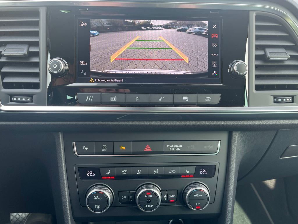 3. Bremsleuchte, 8 Lautsprecher, Ablagetasche an Vordersitzlehnen, Airbag Beifahrerseite abschaltbar, Airbag Fahrer-/Beifahrerseite, Ambiente-Beleuchtung LED, Antriebs-Schlupfregelung (ASR), Außenspiegel elektr. verstell-, heiz- und anklappbar mit Spiegelabsenkung, Außenspiegel Wagenfarbe, Blinkleuchten LED in Außenspiegel integriert, Bluetooth-Schnittstelle mit Freisprecheinrichtung integriert, Bordcomputer, Brillenfach, Elektron. Querdifferentialsperre (XDS), Fahrassistenz-System: Berganfahr-Assistent (Hill-Holder), Fahrassistenz-System: Müdigkeitserkennung, Fahrassistenz-System: Spurhalteassistent, Fahrassistenz-System: Umfeldbeobachtungssystem (Front assist) mit City-Notbremsfunktion, Fahrassistenz-System: Verkehrszeichenerkennung, Fensterheber elektrisch vorn + hinten mit Komfortschaltung, Fußraumbeleuchtung vorn LED, Gepäckraumabdeckung / Rollo, Handschuhfach beleuchtet, Heckleuchten LED mit dynamischem Blinklicht, Innenausstattung: Chrom-Applikationen, Isofix-Aufnahmen für Kindersitz, Karosserie: 5-türig, Klimaanlage Climatronic 2-Zonen, Knieairbag Fahrerseite, Kofferraumbeleuchtung, Kombiinstrument digital (virtual cockpit), Kopf-Airbag-System, Lendenwirbelstütze verstellbar, Licht- und Sicht-Paket, LM-Felgen, Mittelarmlehne hinten, Mittelkonsole vorn mit Mittelarmlehne, Becherhalter, Ablagebox und Luftdüsen hinten, Modellpflege, Motor 1,5 Ltr. - 110 kW 16V TSI ACT, Nebelscheinwerfer LED mit Abbiegelicht, Notrufsystem, Otto-Partikelfilter (OPF), Parkbremse elektrisch mit Auto-Hold-Funktion, Radstand 2638 mm, Reifen-Reparaturset, Reifenkontroll-Anzeige, Rücksitzlehne geteilt/klappbar (1/3-2/3), Schadstoffarm nach Abgasnorm Euro 6e, Schalt-/Wählhebelgriff Leder, Scheinwerfer Voll-LED, SEAT Media-System Plus, Seitenairbag, Sitz vorn links höhenverstellbar, Sitzbezug / Polsterung: Stoff, Sonnenblende links mit Spiegel (beleuchtet), Sonnenblende rechts mit Spiegel (beleuchtet), Start/Stop-Anlage, Stau-/Ablagefach unter Sitz vorn links, Steckdose (12V-Anschluß) vorn, USB-Ladeanschlüsse (2-fach, Typ C) für 2.Sitzreihe, Verzurrösen Koffer-/Laderaum, Wärmeschutzverglasung