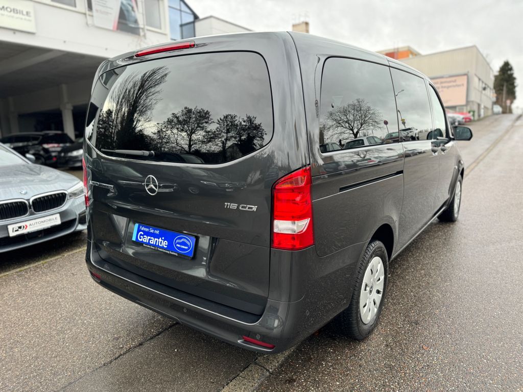 3. Bremsleuchte, Ablagenetz an Vordersitzlehne links, Adaptives Bremslicht, Airbag Beifahrerseite, Airbag Fahrerseite, Anfahrhilfe (Berganfahr-Assistent), Anhängerkupplung: Elektrik für Anhängersteckdose, Anzeige für Waschwasserstand, Audiosystem Audio 30 (DAB, Bluetooth), Auflastung auf 3,1 t, Außenspiegel asphärisch, beide, Außenspiegel elektr. verstell- und heizbar, beide, Außentemperaturanzeige, Befestigungsschienen für Dachträger, BlueEfficiency-Paket, Bodenbelag: Fahrgastraum TPO, Bremssystem mit ABS+ASR, Dachverkleidung, Design- und Ausstattungslinie Edition, Edition, Einschaltautomatik für Fahrlicht, Einstiegsgriff hinten, Fahrassistenz-System: Anfahr-Assistent (Berganfahr-Assistent), Fahrassistenz-System: Attention-Assist (Müdigkeitserkennungs-Sensor), Fahrassistenz-System: Pannenmanagement, Fahrassistenz-System: Seitenwind-Assistent, Fenster für hintere Türen / Heckklappe mit Wisch-/Waschanlage, Fenster im Lade-/FG-Raum: - elektr. ausstellbar, hinten links/rechts, Fenster im Lade-/FG-Raum: - feststehend, vorn links, Fenster im Lade-/FG-Raum: - feststehend, vorn rechts, Frontscheibe mit Scheibenantenne, Generator 250 A, Geschwindigkeits-Begrenzeranlage 210 km/h, Getriebe Automatik GTronic - (9-Stufen), Getränkehalter vorn, Gurtstraffer, Haltegriffe A-Säulen, Haltegriffe im Fond, Handschuhfach abschließbar, Harnstofftank (AdBlue): 24 Ltr., Heckklappe mit Verglasung, Heckscheibe heizbar, Heckscheibenwischer, Innenverkleidung gehobene Ausführung, Karosserie/Aufbau: Kombi Standard, Karosserie/Aufbau: lang, Kindersicherung, Kombiinstrument mit Pixel-Matrix-Display, Komfort-Fahrwerk, Komfortbeleuchtung im Fahrgast-/Laderaum, Kommunikationsmodul (LTE) für digitale Dienste, Kopf-Airbag-System (Windowbag), Kopf-Schulter-Airbag (Thoraxbag) Fahrer-/Beifahrerseite, Kraftstofftank: Haupttank 57 Ltr., Lenkrad (Lenksäule mech. verstellbar), Lenkrad mit Multifunktion inkl. Reiserechner, Mercedes-Benz Notrufsystem, Mittelkonsole mit Staufach, Modellpflege, Motor 2,0 Ltr. - 120 kW CDI KAT, Nebelschlussleuchte, Parktronic-System (PTS), PKW-Zulassung, PTC Heater, Radstand 3200 mm, Radvollabdeckung, Reifen 225/60 R16C 101/99 H, Reifendruck-Kontrollsystem, Rückspiegel innen, Schadstoffarm nach Abgasnorm Euro 6d, Scheibenwaschanlage beheizt, Scheibenwischer mit Regensensor, Schiebetür Lade-/Fahrgastraum rechts mit Verglasung, SCR-System (AdBlue-Technologie), Sicherheitsgurt-System mit Warnanlage (Fahrer-/Beifahrerseite), Sitzbezug / Polsterung: Stoff Caluma, Sitze im Fahrerhaus: Beifahrersitz heizbar, Sitze im Fahrerhaus: Beifahrersitz Komfort, Sitze im Fahrerhaus: Fahrersitz heizbar, Sitze im Fahrerhaus: Fahrersitz Komfort, Sitze im Lade-/FG-Raum: 1.Reihe, 3er-Sitzbank Komfort, Sitze im Lade-/FG-Raum: 2.Reihe, 3er-Sitzbank Komfort, Sondermodell Edition, Sonnenblenden mit Spiegel (beleuchtet), Spiegel-Paket, Stahlfelgen 6,5x16, Steckdosen (12V-Anschluß) im Lade-/Fahrgastraum, 2-fach, Umfeldleuchte in Heckklappe, Verglasung hinten abgedunkelt / Schwarzglas, Vlies-Batterie 92 Ah, Warmluftkanal zum Lade-/Fahrgastraum, Wartungsintervall-Anzeige Assyst, Wärmeschutzverglasung