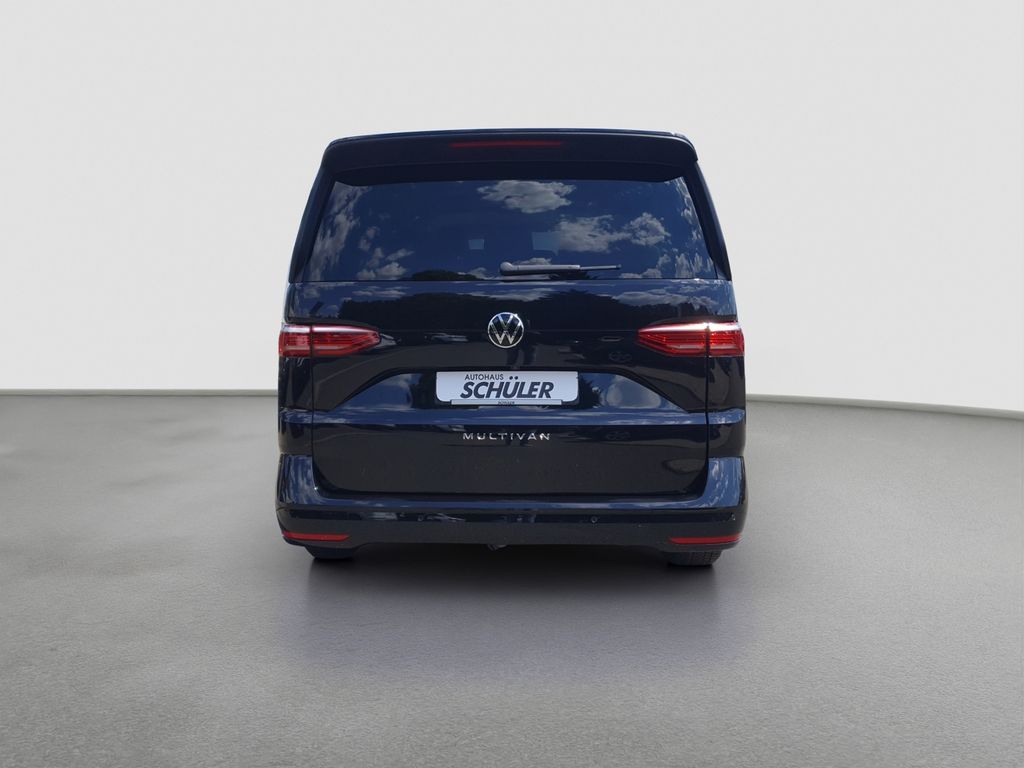 Frontscheibe in Verbundsicherheitsglas, wärme- und geräuschdämmend, beheizbar; Akustik-Paket; Anhängevorrichtung anklappbar, mit elektrischer Entriegelung (einschließlich Gespannstabilisierung); Schlossträgerabdeckung aus Kunststoff; Leiste zwischen den Scheinwerfern hinterleuchtet; Überhang hinten, lang; Multivan Plakette am Kotflügel und Multivan-Schriftzug mittig auf der Heckklappe