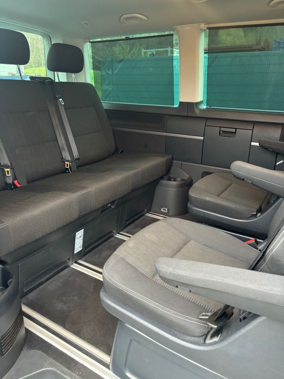 Abdeckung Schiebetürleiste, Airbag Beifahrer abschaltbar, Airbag Fahrer-/Beifahrerseite, Anzeige für Waschwasserstand, Armaturentafel Komfort, Ausstattungs-Paket Licht + Sicht, Außenspiegel elektr. verstell- und heizbar, Außenspiegel konvex, links, Außenspiegel konvex, rechts, Außenspiegel und Türgriffe außen in Wagenfarbe, Blinkleuchten seitlich in Chromoptik, Bodenbelag im Fahrerhaus: Teppich, Bodenbelag: Teppich verstärkt, Doppelscheinwerfer, Doppeltonfanfare, Fahrassistenz-System: Bremsassistent (HBA), Fahrassistenz-System: Multikollisionsbremse (Multi Collision Brake), Fahrwerk 17", Fenster im Lade-/FG-Raum: - feststehend, vorn und hinten links, Fenster im Lade-/FG-Raum: - feststehend, vorn und hinten rechts, Funkschlüssel (2) klappbar, Gepäckraumabdeckung / Rollo, Haltegriffe A-Säulen, Handschuhfach abschließbar, Heckklappe mit Verglasung, Heckscheibe heizbar, mit Wischanlage, Innenausstattung: Dekoreinlagen Dark Silver brushed (Dekorband Anthrazit-Metallic), Innenleuchten im Fahrerhaus: Leseleuchten vorn (2), Innenleuchten im Lade-/FG-Raum: Trittstufenleuchten, Innenraumfilter: Pollenfilter, Karosserie/Aufbau: Bus, Kindersicherung an den Schiebetüren, Klapptisch integriert Lade-/Fahrgastraum, Kühlergrill schwarz lackiert, mit Chromleisten, Lenksäule (Lenkrad) verstellbar, LM-Felgen, Motor 2,0 Ltr. - 146 kW TDI, Multifunktionsanzeige Plus, Multimedia-Schnittstelle USB, Radstand 3000 mm, Reifen-Reparaturkit, Reifenkontroll-Anzeige, Schadstoffarm nach Abgasnorm Euro 6d-TEMP, Schiebetür Lade-/Fahrgastraum rechts, Sitzbezug / Polsterung: Stoff, Sitze im Fahrerhaus: Beifahrersitz Komfort, Sitze im Fahrerhaus: Fahrer- und Beifahrersitz höhenverstellbar, Sitze im Fahrerhaus: Fahrersitz Komfort, Sitze im Fahrerhaus: Lendenwirbelstützen Fahrer- und Beifahrersitz, Sitze im Lade-/FG-Raum: 1.Reihe, 2 Drehsitze, Sitze im Lade-/FG-Raum: 2.Reihe, 3er-Sitzbank, Sonnenblenden mit Spiegel (beleuchtet), Sonnenschutzrollo im Fahrgastraum, Start/Stop-Anlage Motor, Steckdose (12V-Anschluß) im Fahrerhaus, Stoßfänger in Wagenfarbe, Türablagekasten vorn, Verkleidung im Lade-/FG-Raum: Komfort, Wärmeschutzverglasung, Zentralverriegelung mit Fernbedienung und Innenbetätigung, Zuheizer, Zul. Gesamtgewicht 3,00 , Sitzheizung vorn