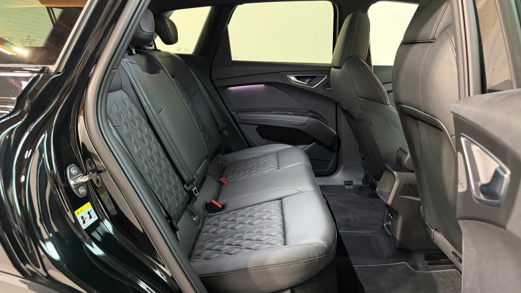 Airbag Beifahrerseite abschaltbar, Airbag Fahrer-/Beifahrerseite, Akustischer Fußgängerschutz, Außensound (e-sound), Audi connect (Notruf- und Assistance-System), Audi connect (Remote / Control), Ausstattungs-Paket: Advanced, Elektromotor 250 kW (cont. 77 kW, Dual-Elektromotor), Fahrassistenz-System: Ausweich-Assistent, Fahrassistenz-System: Bremsassistent (Audi pre sense front), Fahrassistenz-System: Müdigkeitserkennung (Pausenempfehlung), Fahrassistenz-System: Spurverlassenswarnung, Fensterheber elektrisch vorn + hinten, Frontscheibe Klarglas, Fußmatten Velours, Geschwindigkeits-Begrenzeranlage, Getriebe für Elektrofahrzeug, HV-Batterie 82 kWh brutto / 77 kWh netto, Isofix-Aufnahmen für Kindersitz an Beifahrersitz und Rücksitz, Karosserie: 4-türig, Klimaautomatik, Komfort-Standklimatisierung, Kontrast-Lackierung, Kopf-Airbag-System (Sideguard), Ladedose (AC / DC), Ladekabel mit Typ 2-Stecker (Mode 3), On-Board-Ladegerät (bis 11 kW), Progressivlenkung, Radstand 2764 mm, Reifenkontroll-Anzeige, Seitenairbag vorn, Seitenairbag vorn mitte (Interaktionsairbag), Sitzheizung vorn, Standard-Fahrwerk, Steckdose (12V-Anschluß) in Mittelkonsole vorn, Wärmeschutzverglasung grün getönt, Sitzheizung vorn