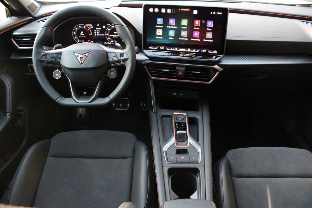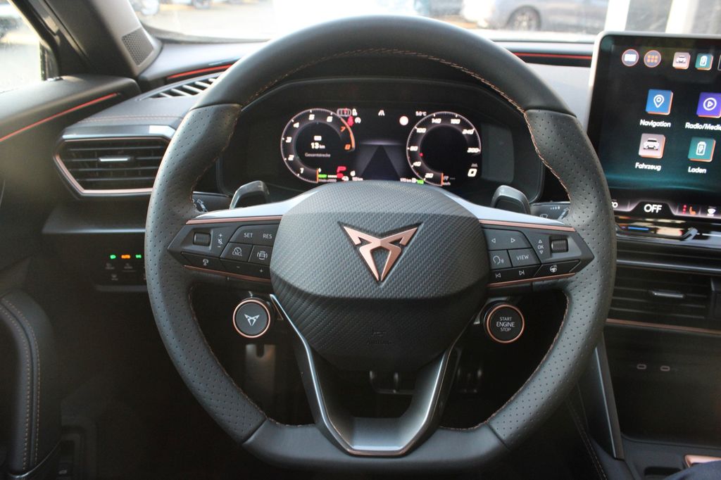 6 Lautsprecher, Abdeckkappen Außenspiegel Schwarz, Airbag Beifahrerseite abschaltbar, Airbag Fahrer-/Beifahrerseite, Außenspiegel elektr. verstell-, heiz- und anklappbar mit Spiegelabsenkung und Welcome Light, Connectivity-Box, Dachhimmel schwarz, Dachreling schwarz, hochglänzend, Design-Paket Dynamic, Differentialsperre (Vorderachse), Edge Paket mit Safesicherung, Einparkhilfe vorn und hinten, Einstiegsleisten vorn beleuchtet, Elektron. Differentialsperre (XDS), Fahrassistenz-System: Adaptive Fahrwerksregelung (DCC), Fahrassistenz-System: Fahrprofilauswahl (CUPRA Drive Profile), Fensterheber elektrisch vorn + hinten mit Komfortschaltung, Fensterzierleisten schwarz, Full Link (MirrorLink, Apple CarPlay und Android Auto), Gepäck-/Laderaumboden doppelt, Gepäckraumabdeckung / Rollo, Gepäckraumbeleuchtung (LED), Handschuhfach mit LED-Beleuchtung, Hybrid 200 kW (Motor 1,5 Ltr. - 130 kW TSI eHybrid), Innenausstattung: Interieurleisten Copper, Isofix-Aufnahmen für Kindersitz an Beifahrersitz und Rücksitz (inkl. i-Size-Kindersitze), Karosserie: 5-türig, Klimaanlage Climatronic 3-Zonen, Kombiinstrument digital (virtual cockpit), Kopf-Airbag-System, Kopfstützen hinten (3-fach), Ladekabel mit Schukostecker, Lendenwirbelstütze Sitz vorn links, verstellbar, Lendenwirbelstütze Sitz vorn rechts, verstellbar, Leseleuchten hinten LED, Leseleuchten vorn LED, Licht- und Sicht-Paket, LM-Felgen, Media-System Plus, Mobile Online Dienste Cupra Connect plus, Modellpflege, Notrufsystem, Parkbremse elektrisch mit Auto-Hold-Funktion, Pedale Dark Aluminium-Design, Radioempfang digital (DAB+), Radstand Standard, Reifen-Reparaturset, Rücksitzlehne geteilt/klappbar mit Mittelarmlehne und Durchladeeinrichtung, Rücksitzlehnen umklappbar mit Fernentriegelung im Kofferraum, Schadstoffarm nach Abgasnorm Euro 6e, Seitenairbag, Seitenairbag vorn mitte (Central Airbag), Seitenscheiben ab 2.Sitzreihe und Heckscheibe dunkel getönt (Privacy Glass), Seitenscheiben hinten und Heckscheibe abgedunkelt, Sitz vorn links höhenverstellbar, Sitz vorn rechts höhenverstellbar, Sonnenblende links mit Spiegel (beleuchtet), Sonnenblende rechts mit Spiegel (beleuchtet), Steckdose 230V im Gepäckraum, USB-Ladeanschlüsse (2-fach, Typ C) für 2.Sitzreihe, USB-Schnittstelle vorn (2-fach, Typ C), Verzurrösen Koffer-/Laderaum, Voll-LED-Paket, Warnanlage für Sicherheitsgurt-System, Wärmeschutzverglasung