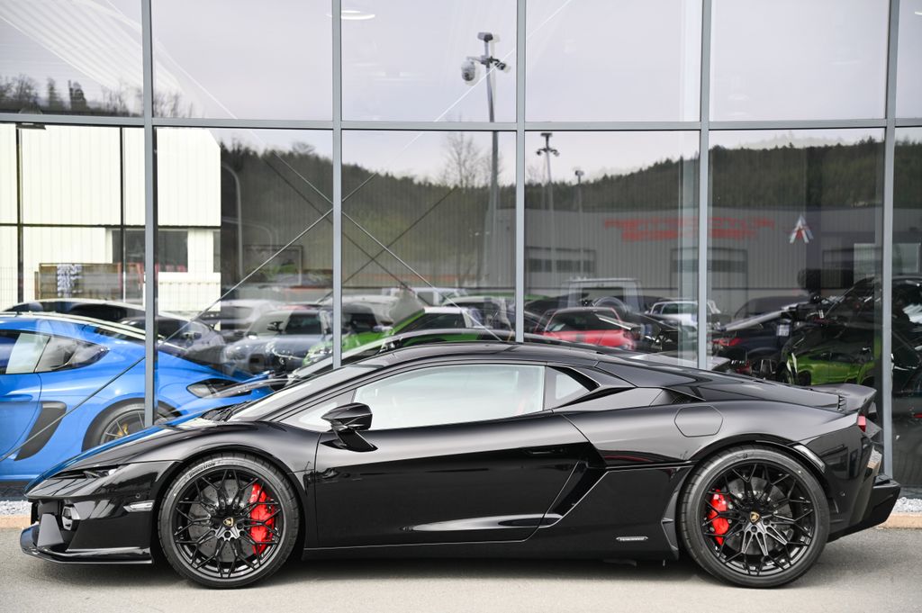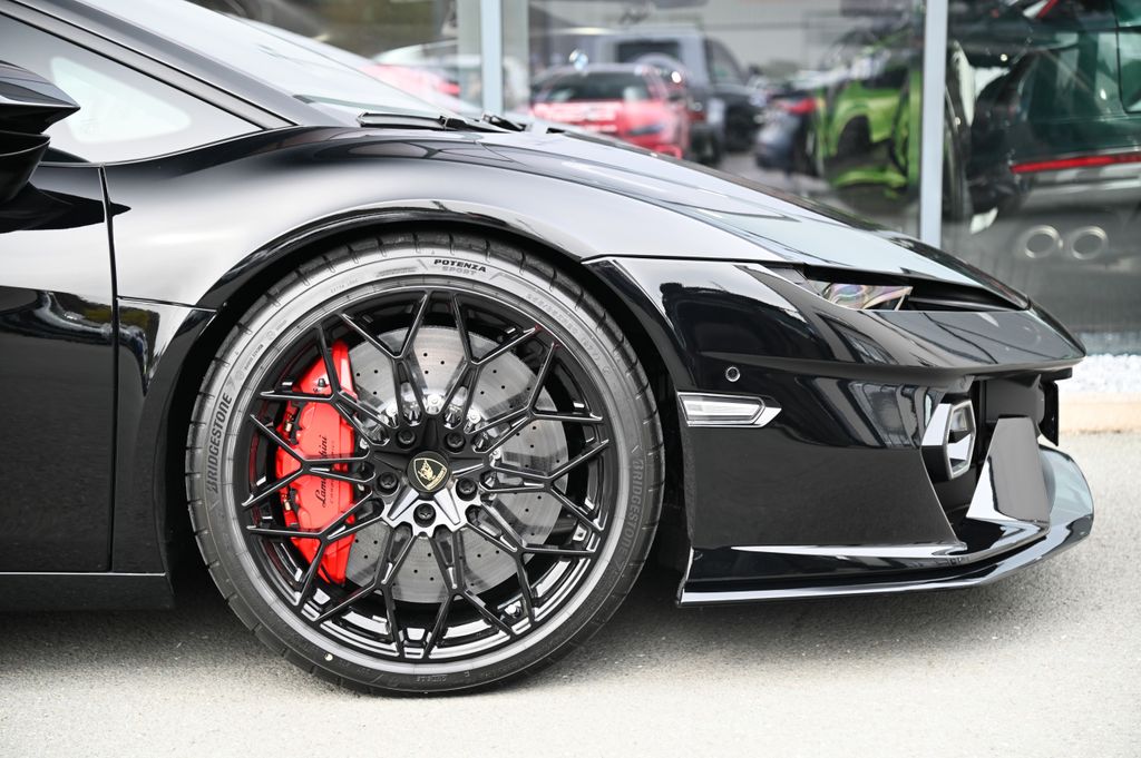 - Innen: Carbon Sport Seats (Corsa Tex Pack) in Leder /-Alcantara schwarz, abgesetzt mit Rosso Alala Ziernähte und gesticktes Lamborghini-Emblem in den Kopfstützen