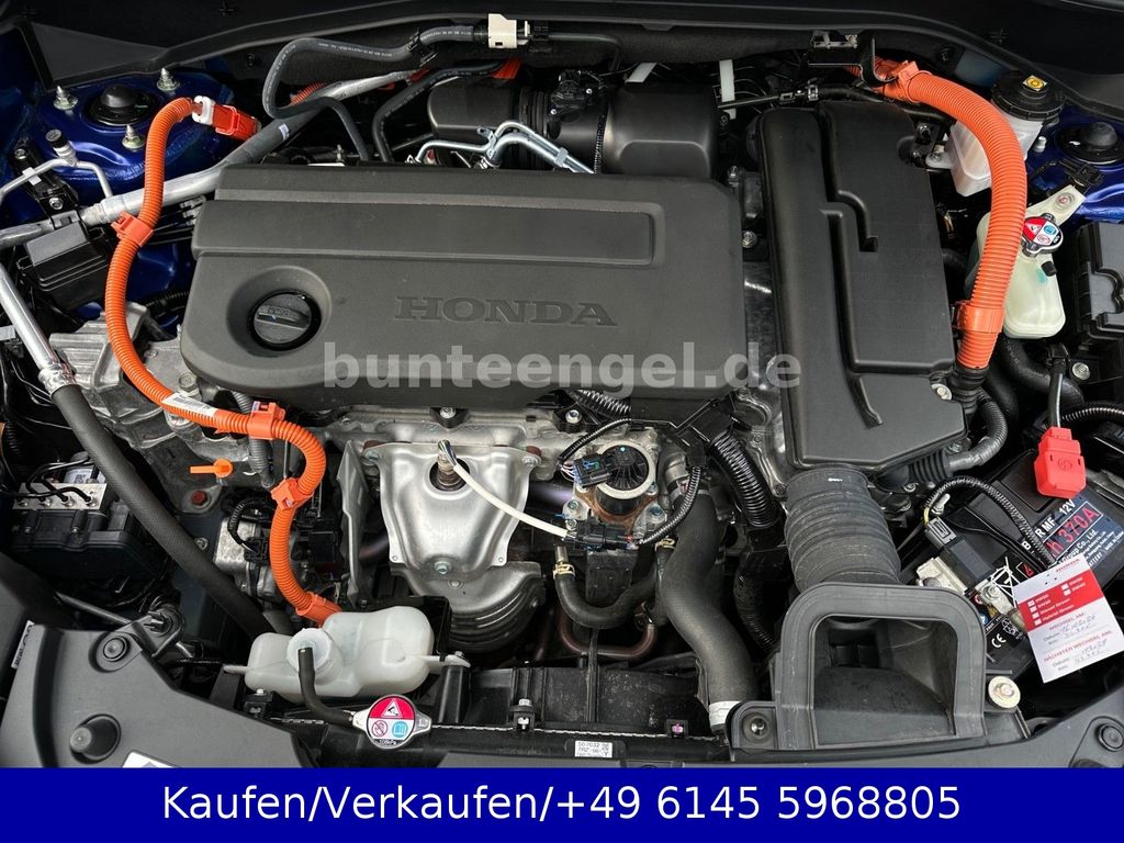 Airbag Beifahrerseite abschaltbar, Aktive Kopfstützen vorn, Ambiente-Beleuchtung Türverkleidung hinten, Ambiente-Beleuchtung Türverkleidung vorn, Anzeige für Reifendruck im Display, Audiosystem: Radio/MP3-Player, Ausschaltverzögerung für Innenbeleuchtung, Autom. Begleitfunktion der Beleuchtung (Coming Home, Leaving Home), Automatische Fahrlichtschaltung / Lichtsensor, Außenspiegel asphärisch, links, Außenspiegel elektr. anklappbar, Außenspiegel elektr. verstell- und heizbar, beide, Außenspiegel mit Bordsteinautomatik, rechts, Bremsassistent, Bremsenergierückgewinnung (Rekuperationssystem), Brillenhalter im Dachhimmel integriert, Dachantenne im Haifischflossen-Design, Dachspoiler, Einparkhilfe vorn und hinten, Elektr. Bremskraftverteilung, Elektromotor 135 kW (Hybridantrieb), Fahrassistenz-System: Adaptiver Fernlichtassistent, Fahrassistenz-System: Bergabfahrhilfe (HDA), Fahrassistenz-System: Berganfahrhilfe, Fahrassistenz-System: Fahrprofilauswahl (Drive Mode), Fahrassistenz-System: Intelligente Geschwindigkeitsanpassung (Tempomat) mit Abstandsregelung I-ACC, Fahrassistenz-System: Kollisionswarnsystem mit Bremseingriff und Beschleunigungskontrolle (LSBC), Fahrassistenz-System: Kollisionswarnsystem mit Bremseingriff und Fußgängererkennung (CMBS), Fahrassistenz-System: Müdigkeits-Warner (Driver Attention Monitor), Fahrassistenz-System: Sicherheitssystem mit automatischem Notruf (ERA GLONASS / eCall), Fahrassistenz-System: Spurhalteassistent (LKAS / LDW), Fahrassistenz-System: Spurverlassenswarnung (Lane Departure Warning, LDW), Fahrassistenz-System: Stauassistent (LSF), Fahrassistenz-System: Verkehrszeichenerkennung, Fensterheber elektrisch vorn und hinten, mit Auf-/Ab-Automatik, Freisprecheinrichtung (Bluetooth) mit Sprachsteuerung, Fußmatten, Fußraumbeleuchtung vorn LED, Gepäcknetz an Vordersitzlehne links, Gepäcknetz an Vordersitzlehne rechts, Gepäckraumabdeckung / Rollo, Getriebe Automatik stufenlos - ECVT, Getränkehalter hinten, Getränkehalter vorn, Gurtstraffer, Head-up-Display, Heckleuchten LED, Hybrid 135 kW (Motor 2,0 Ltr. - 105 kW), Induktionsladeschale für Smartphone, Infotainment-System: Honda Connect mit 9" Touchscreen / Navigationssystem / Internetbasierende Dienste / DAB-Tuner, Innenraumfilter: Pollenfilter, Innenspiegel mit Abblendautomatik, Intelligenter Geschwindigkeits-Begrenzer (ISL), Isofix-Aufnahmen für Kindersitz, Karosserie: 5-türig, Klimaautomatik 2-Zonen, Knieairbag Fahrerseite, Kofferraumdeckel / Heckklappe elektr. betätigt (Öffnung, sensorgesteuert), Kombiinstrument Digitalanzeige 10,2 Zoll, Kopf-Airbag-System, Kühlergrill mit vertikalen Lamellen, Lendenwirbelstütze Sitz vorn links und rechts, elektr. verstellbar, Lenkrad heizbar, Lenksäule (Lenkrad) höhen-/längsverstellbar, Leseleuchten hinten, Leseleuchten vorn, Leuchtweitenregelung automatisch, LM-Felgen, Metallic-Lackierung Ruse Black, Mittelarmlehne hinten, Motorsound-System (Acoustic Vehicle Alerting System, AVAS), Multifunktion für Lenkrad, Nebelschlussleuchte, Notbremssignal, Otto-Partikelfilter (OPF), Panorama-Schiebedach elektrisch, Parkbremse elektrisch, Radstand Standard, Reifen-Reparaturset, Rückfahrkamera, Rücksitzlehne geteilt/klappbar, Schadstoffarm nach Abgasnorm Euro 6d, Scheinwerfer LED, Seitenairbag hinten, Seitenairbag vorn, Seitenairbag vorn mitte (Center-Airbag), Sitz vorn links elektr. verstellbar (mit Memory), Sitz vorn links höhenverstellbar, Sitz vorn rechts elektr. verstellbar, Sitzbezug / Polsterung: Leder / Kunstleder, Sitzheizung vorn, Smartphone Schnittstelle (Apple CarPlay & Android Auto), Sonnenblenden mit Make-up-Spiegel, Sonnenblenden mit Spiegel (beleuchtet), Sound-System BOSE, Sport-Pedalerie, Steckdose (12V-Anschluß) im Koffer-/Laderaum, Steckdose (12V-Anschluß) in Armaturentafel, Türgriffe außen Wagenfarbe, USB-Ladeanschluß hinten (2-fach), USB-Ladeanschluß vorn, USB-Schnittstelle, Verglasung hinten abgedunkelt (Privacy Glass), Verzurrösen Koffer-/Laderaum