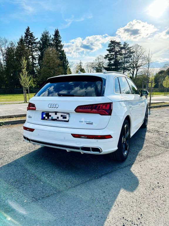 Entdecken Sie diesen gepflegten Audi Q5 Hybrid mit Plug-in-Technologie, der Leistung und Effizienz perfekt kombiniert. Der 252 PS (Benziner Leistung) / 115 PS (Elektrische Leistung) starke Allradantrieb bietet hervorragende Fahreigenschaften bei jedem Wetter. Erstregistriert in 2020, präsentiert sich dieser SUV in elegantem Weiß mit grau-schwarzen Teilleder-Interieur. Die Batteriekapazität liegt bei beeindruckenden 93% und ist mit einer großzügigen 7-Jahres-Garantie bis 150.000 km abgesichert. Die rein elektrische Reichweite beträgt 52 km. Mit nur drei Vorbesitzern und vollständiger Servicehistorie, ausschließlich bei Audi, ist dieser Q5 ein zuverlässiger Begleiter für den Alltag und längere Reisen.Die umfangreiche Ausstattung umfasst Matrix Laserscheinwerfer, elektrische Heckklappe, Navigationssystem, digitales Cockpit und Head-up-Display. Für Komfort sorgen die elektrisch verstellbaren Sitze mit Massagefunktion im Fond, Sitzheizung und Klimaautomatik. Zahlreiche Assistenzsysteme wie adaptiver Tempomat, Spurhalteassistent, Totwinkelwarner und Parksensoren mit Rückfahrkamera erhöhen die Sicherheit.