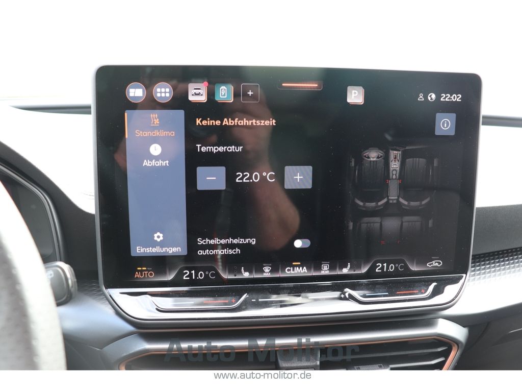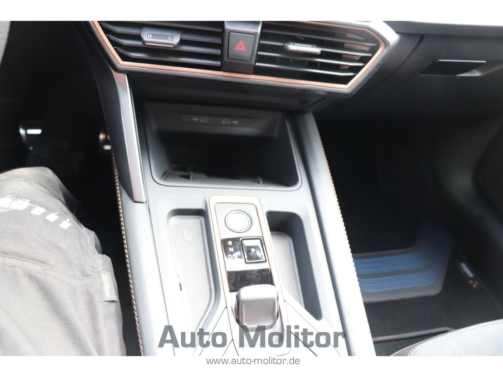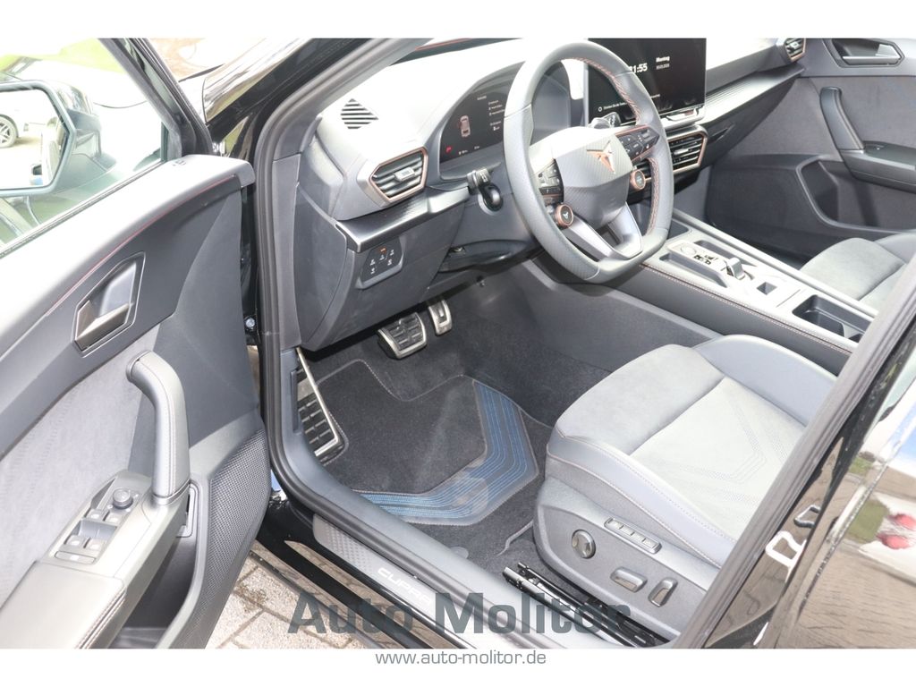 - Weiteres: Leuchtweitenregelung automatisch, Mittelarmlehne vorn, Sportsitze vorn, Außenspiegel elektr. verstell-, heiz- und anklappbar mit Spiegelabsenkung und Welcome Light, Lendenwirbelstütze Sitz vorn rechts, verstellbar, Notrufsystem, LM-Felgen, Nebelscheinwerfer LED mit Abbiegelicht, Rücksitzlehnen umklappbar mit Fernentriegelung im Kofferraum, Scheinwerfer Voll-LED, USB-Schnittstelle vorn (2-fach, Typ C), Seitenairbag vorn mitte (Central Airbag), Zentralverriegelung / Startanlage Keyless Go, Isofix-Aufnahmen für Kindersitz an Beifahrersitz und Rücksitz (inkl. i-Size-Kindersitze), Lenkrad heizbar (CUPRA Supersport, Leder) mit Multifunktion und Schaltfunktion, Mobile Online Dienste Cupra Connect plus, Connectivity-Box, Innenausstattung: Interieurleisten Copper, Rücksitzlehne geteilt/klappbar mit Mittelarmlehne und Durchladeeinrichtung, Sitzbezug / Polsterung: Stoff/Kunstleder schwarz (Sharp Textil), Sonderlackierung Fiord-Blau, Airbag Fahrer-/Beifahrerseite, Kopf-Airbag-System, Gepäckraumabdeckung / Rollo, Licht- und Regensensor, Reifenkontroll-Anzeige, Seitenairbag, Dachreling schwarz, hochglänzend, Parkbremse elektrisch mit Auto-Hold-Funktion, Full Link (MirrorLink, Apple CarPlay und Android Auto), Heckleuchten Voll-LED mit dynamischem Lichtband (Infinite Light), USB-Ladeanschlüsse (2-fach, Typ C) für 2.Sitzreihe, Gepäckraumbeleuchtung (LED), Seitenscheiben ab 2.Sitzreihe und Heckscheibe dunkel getönt (Privacy Glass), Antriebsart: Frontantrieb, Audio-Navigationssystem mit Touchscreen Farbbildschirm 12, 9, Autom. Distanzregelung (ACC / PCC) mit vorausschauender Geschw.-Regelung, Beifahrerairbag abschaltbar, Climatronic 3-Zonen, Einparkhilfe vorn und hinten, Einschaltautomatik für Fahrlicht, Elektron. Differentialsperre (XDS), Fahrprofilauswahl (CUPRA Drive Profile), Fensterheber elektrisch vorn und hinten mit Komfortschaltung, Fensterzierleisten schwarz, Fernlichtassistent, Gepäck-/Laderaumboden doppelt, getönte Scheiben - Privacy Glass, Handschuhfach mit LED-Beleuchtung, Innenspiegel mit Abblendautomatik, Kombiinstrument digital (virtual cockpit), Kopfstützen hinten, Ladekabel mit Schukostecker, Lendenwirbelstütze, Leseleuchten vorn LED, Licht- und Sicht-Paket, Lichtassistent Media-System Plus, Müdigkeitserkennung, Progressivlenkung, Radioempfang digital (DAB+), Sitzhöhenverstellung, Sitzhöhenverstellung Fahrersitz, Spurhalteassistent, Start/Stop-Anlage, Umfeldbeobachtungssystem (Front assist) mit City-Notbremsfunktion, Verkehrszeichenerkennung, Voll-LED-Paket, Wärmeschutzverglasung, Airbag Beifahrerseite abschaltbar, Fensterheber elektrisch vorn + hinten mit Komfortschaltung, Seitenscheiben hinten und Heckscheibe abgedunkelt, Audiosystem: Vorbereitung für spätere Freischaltung Navigationsfunktion Cupra Connect Plus, Außenspiegel elektr. verstell-, heiz- und anklappbar, Spiegelabsenkung, Welcome Light, Memory, Sitz vorn links elektr. verstellbar (mit Memory), Sitzbezug / Polsterung: Stoff Dinamica / Kunstleder schwarz mit blauen Akzenten