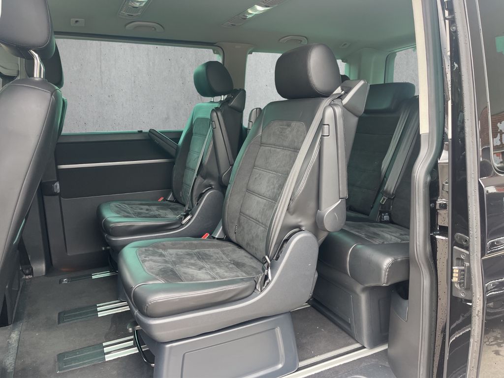 Abdeckung Schiebetürleiste, Airbag Beifahrer abschaltbar, Airbag Fahrer-/Beifahrerseite, Antriebsart: Allradantrieb, Armaturentafel Komfort, Ausstattungs-Paket Licht + Sicht, Außenspiegel asphärisch, links, Außenspiegel elektr. verstell-, heiz- und anklappbar, Außenspiegel konvex, rechts, Außenspiegel und Türgriffe außen in Wagenfarbe, Bodenbelag im Fahrerhaus: Teppich, Bodenbelag: Teppich verstärkt, Chromleisten Stoßfänger vorn, seitlich und Heckklappe unten, Doppeltonfanfare, Dämmglas-Paket, Fahrassistenz-System: Bremsassistent (HBA), Fahrassistenz-System: Multikollisionsbremse (Multi Collision Brake), Fahrassistenz-System: Müdigkeitserkennungs-Sensor, Fahrassistenz-System: Spurwechselassistent (Side Assist / Blind Spot Sensor), Fahrwerk 17", Fenster im Lade-/FG-Raum: - feststehend, vorn und hinten links, Fenster im Lade-/FG-Raum: - feststehend, vorn und hinten rechts, Fußmatten Fahrerhaus: Velours, Gepäckraumabdeckung / Rollo, Haltegriffe A-Säulen, Handschuhfach abschließbar, Heckklappe mit Verglasung, Heckscheibe heizbar, mit Wischanlage, Innenausstattung: Dekoreinlagen Dark Silver brushed (Dekorband Black Glossy), Innenleuchten im Fahrerhaus: Leseleuchten vorn (2), Innenleuchten im Lade-/FG-Raum: Trittstufenleuchten, Innenraumfilter: Pollenfilter, Karosserie/Aufbau: Bus, Kindersicherung an den Schiebetüren, Klimaautomatik Climatronic (Fahrerhaus + Lade-/Fahrgastraum), Kühlergrill schwarz lackiert, mit Chromleisten, Ladekanten-/ Trittstufenabdeckungen in Edelstahl, Lenksäule (Lenkrad) verstellbar, LM-Felgen, Motor 2,0 Ltr. - 150 kW TDI, Multifunktionsanzeige Premium (Farbdisplay), Multimedia-Schnittstelle USB (iPhone / iPod) mit AUX-IN, Nichtraucher-Paket, Radstand 3000 mm, Reifen-Reparaturkit, Reifenkontroll-Anzeige, Schadstoffarm nach Abgasnorm Euro 6, Scheinwerfer und Heckleuchten LED, Schiebetür Lade-/Fahrgastraum rechts, SCR-System (AdBlue-Technologie), Seitenscheiben Dämmglas, Sitzbezug / Polsterung: Alcantara, Sitze im Fahrerhaus: Beifahrersitz Komfort, Sitze im Fahrerhaus: Fahrer- und Beifahrersitz heizbar, Sitze im Fahrerhaus: Fahrer- und Beifahrersitz höhenverstellbar, Sitze im Fahrerhaus: Fahrersitz Komfort, Sitze im Fahrerhaus: Lendenwirbelstützen Fahrer- und Beifahrersitz, Sitze im Lade-/FG-Raum: 1.Reihe, 2 Drehsitze, Sitze im Lade-/FG-Raum: 2.Reihe, 3er-Sitzbank, Sonnenblenden mit Spiegel (beleuchtet), Sonnenschutzrollo im Fahrgastraum, Start/Stop-Anlage Motor, Steckdose (12V-Anschluß) im Fahrerhaus, Stoßfänger in Wagenfarbe, Türablagekasten vorn, Verkleidung im Lade-/FG-Raum: Komfort, Zentralverriegelung mit Fernbedienung und Innenbetätigung, Zuheizer, Zul. Gesamtgewicht 3,00 t,Sitzheizung vorn