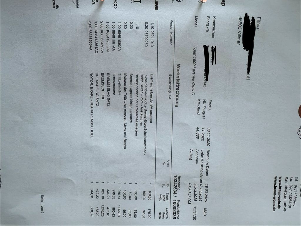 Gerade neue Bremsen (Scheiben und Klötze, siehe Bilder) bei Braun in Koblenz.