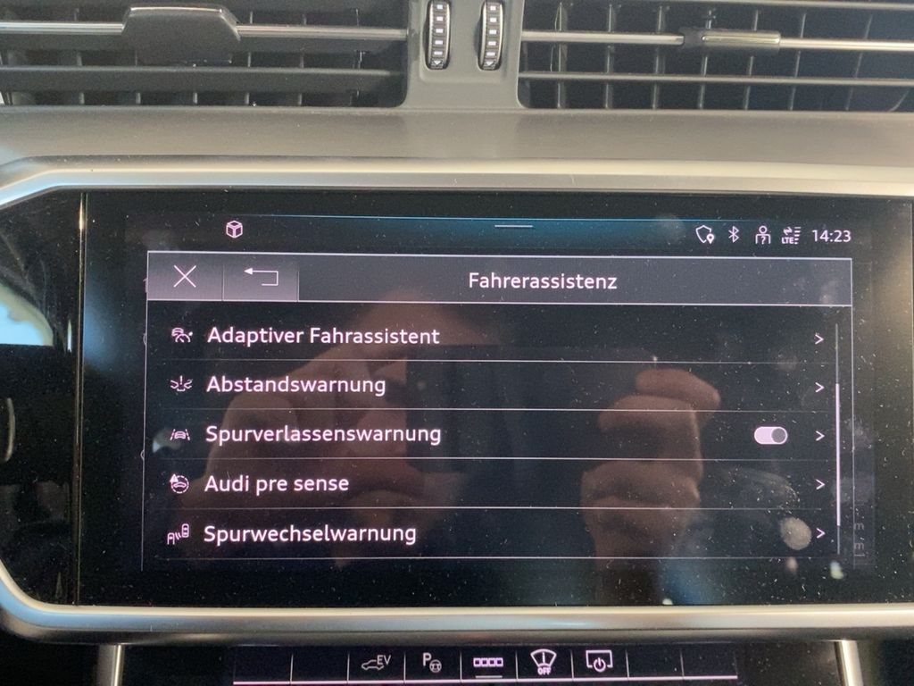 Rückfahrkamera; Spurverlassenswarnung; Geschwindigkeits-Begrenzeranlage; Spurwechselassistent (side assist) inkl. Audi pre sense rear; Umgebungskameras; Kamerabasierte Verkehrszeichenerkennung; Querverkehrs-Assistent Heck; Adaptiver Fahrassistent mit Notfallassistent; Adaptiver Geschwindigkeitsassistent mit Geschwindigkeitsbegrenzer, Effizienz-, Ausweich- und Abbiegeassistent; 360-Grad-Rundumschutz (Audi pre sense 360°); Audi drive select; Parkassistent mit Einparkhilfe plus; Einparkhilfe plus vorn, seitlich und hinten, akustisch und optisch mit Umgebungsanzeige; Audi pre sense front; Kreuzungsassistent; Notfall-Assistent mit automatischem Notruf; Audi connect Notruf & Service mit Audi connect Remote & Control; Head-up-Display; Ausstiegswarnung; Mit Multifunktionskamera; Ausweich-Assistent; adaptive Scheibenwischer mit integrierten Waschdüsen; Assistenzpaket Parken mit Remote Parkassistent plus