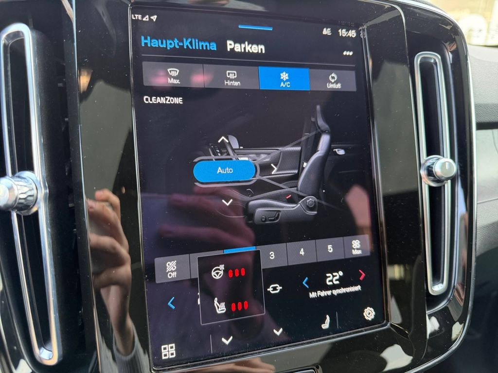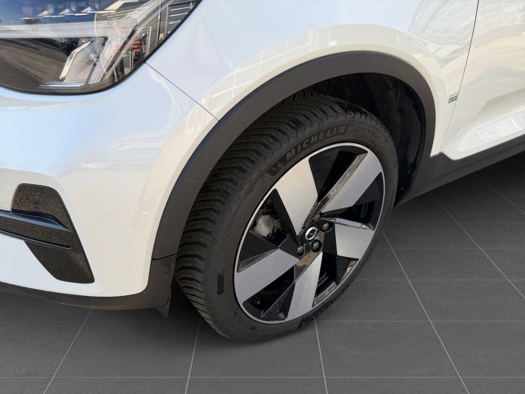 - Weiteres: Reifendruck-Kontrollsystem, Allradantrieb, Rückfahrkamera, Regensensor, Scheinwerfer LED, Lenkrad mit Multifunktion, Verglasung getönt, Heckleuchten LED, ABS mit elektr. Bremskraftverstärker, Lendenwirbelstützen vorn, elektr. verstellbar (4-Wege), Frontkamera (Toter Winkel), Digitale Instrumentierung 12,3 Zoll Display 2. Generation, Lenksäule höhen-/längsverstellbar, Einparkhilfe vorn und hinten (hinten mit Bremsfunktion), Airbag Fahrer-/Beifahrerseite, Knieairbag Fahrer, Seitenairbag vorn, Kopfairbag vorn / hinten, Convenient Entry & Start, Standheizung elektrisch, Alarmanlage mit Bewegungssensor und Neigungsüberwachung, Isofix-Aufnahmen für Kindersitz (Beifahrersitz, Rücksitz), Pollenfilter, HV-Batterie 78 kWh brutto / 75 kWh netto (Lithium-Ionen), Keyless Drive, Klimaautomatik 2-Zonen, Android (DAB+), LM-Felgen vorn/hinten: 8x20 / 9x20 (5-Speichen-Sport-Design, Diamantschnitt schwarz hochglänzend), Außenspiegel elektr. verstellbar, Wegfahrsperre, Rücksitzlehne geteilt/klappbar, Lenkradheizung, USB-Anschlüsse, je 2 vorn und hinten, Sonderlackierung Crystal-Weiß Perleffekt, Sitzbezug / Polsterung: Connect Textil / Micro-Tech (Ledernachbildung), 12V-Steckdose, aktiver Spurhalteassistent, Ambiente-Beleuchtung erweitert, Audiosystem Volvo High Performance, Außen-/Innenspiegel mit Abblendautomatik, Außenspiegel elektr. anklappbar, Automatische Stabilitätskontrolle ESC, Beifahrerairbag abschaltbar, Beinauflage manuell einstellbar, Bergabfahrkontrolle (HDC), Berg-Anfahr-Assistent (HSA), Betätigung Heckklappe/-Deckel automatisch, Blinkleuchten LED in Außenspiegel integriert, Bremsassistent, Connected Safety, Driver Assistance, Driver Awareness, Elektron. Differentialsperre Corner Traction Control (CTC) mit Torque Vectoring, Emergency Stop Assist, Fensterheber elektrisch vorn und hinten, Freisprechanlage Bluetooth inkl. Audio-Streaming, Fußraumleuchte vorn, Gepäckraum-Trennnetz, Geschwindigkeits-Begrenzeranlage, Getränkehalter in Mittelkonsole, Gurtstraffer, Heckaufprall-Abschwächung, Heckscheibe heizbar, Heckspoiler, Induktionsladeschale für Smartphone, Innenausstattung: Dekoreinlagen Topography beleuchtet, Kindersicherung elektr. betätigt, Ladekabel (4,5 m) mit Typ 2-Stecker (Mode 3), Ladekabel (6,0 m) mit Typ 2-Stecker (Mode 3), Ladekantenschutz (Edelstahl), Leseleuchten vorn und hinten, Mittelarmlehne vorn mit Ablagefach, Müdigkeits-Warner (Driver-Alert-Control, DAC), Multikollisionsbremse (Multi Collision Brake), Oncoming Lane Mitigation, One Pedal Drive (elektronisches Gaspedal), Parkbremse elektrisch, Pilot Assist, Querverkehrs-Assistent Heck (Cross Traffic Alert, CTA), Radioempfang digital (DAB+), Ready to Drive Notification, Run-off Road Protection, Safety Assistance, Schleudertrauma-Schutzsystem (WHIPS), Seitenscheiben hinten abgedunkelt, Service-Paket: Wartungsservice und Versicherung, Service-System: Google Services, Servolenkung - geschwindigkeitsabhängig, Sitzheizung vorn, Sitzhöhenverstellung, Sportlenkrad, Straßenrand-Erkennung (Road Edge Detection)